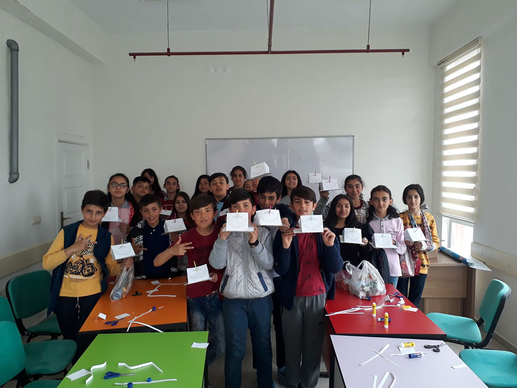 Kayseri Bilim Merkezi “Bilim İçin Her Yerde” sloganıyla bilimsel etkinliklerine ilçelere taşımaya devam ediyor. Bilim Merkezi eğitmenleri bu kez Tomarza’ya gitti. Bilim Merkezi’nin imkanlarından ilçelerde bulunan öğrencilerin de faydalanması amacıyla “Bilim İçin Her Yerde” sloganıyla hareket eden Kayseri Bilim Merkezi bu hafta Tomarza Kadın ve Gençlik Merkezi’nde çeşitli etkinlikler gerçekleştirdi. Her hafta farklı bir ilçede gerçekleştirilen etkinliklerde farklı atölye çalışmaları ve bilimsel şovlar yapılıyor. 40 öğrencinin katılımı ile yapılan etkinliklerde öğrenciler eğlenirken öğrenmenin keyfini yaşadılar. Etkinlikler önümüzdeki hafta da Akkışla'da yapılacak.