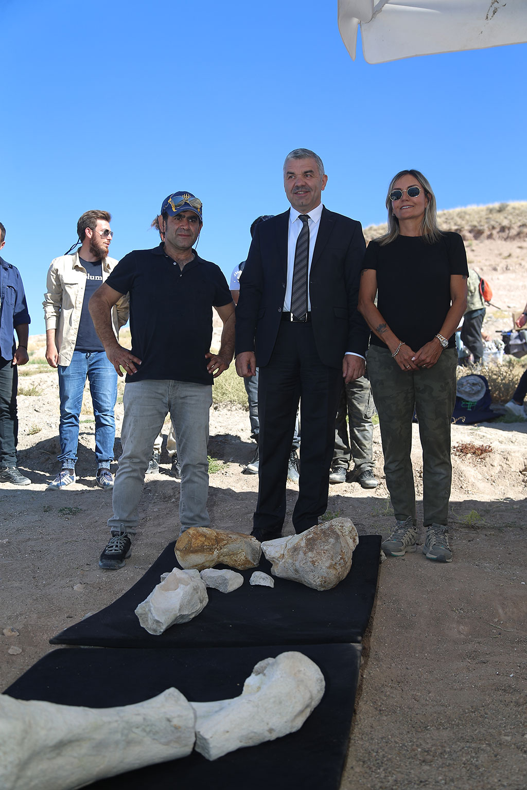 Büyükşehir Belediye Başkanı Mustafa Çelik, Taşhan’da yapılan kazı çalışmaları ve dünya literatürüne geçecek buluntularla ilgili önemli açıklamalar yaptı. Başkan Çelik, bölgedeki zenginlik nedeniyle kazı yapılan alanda bir “Jeopark” kurulabileceğini belirtti. Bulunan fosillerin Kayseri Bilim Merkezi’nde sergileneceğini de ifade eden Başkan Çelik, ayrıca fosillerle ilgili çalışmalar için Bilim Merkezi’nde bir laboratuvar kurulacağını kaydetti. Büyükşehir Belediyesi’nin destekleriyle Taşhan’da yapılan kazı çalışmaları ve bu çalışmalar sonucu bugüne kadar tespit edilmiş en büyük ve en sağlam fil fosillerin bulunması özellikle bilim camiasında büyük yankı buldu. GÜNDEMDE JEOPARK VAR Büyükşehir Belediye Başkanı Mustafa Çelik, Paleontoloji Biliminin en önemli buluntularının yer aldığı Taşhan bölgesinde 15 günlük kazı ile alınan sonucun bölgenin ne denli zengin olduğunu gösterdiğini söyledi. Başkan Çelik, “Bu bölge Jeopark olmayı hak edecek özellikte bir yer. Taşhan fındıklığı ve ormanlığı ile birleştirilince özel bir yer olacak” dedi. Büyükşehir Belediye Başkanı Çelik, Taşhan’dan çıkarılan 7,5 milyon yıllık fosillerin sergilenmesi, incelenmesi ve diğer çalışmalar için Kayseri Bilim Merkezi’ni kullanacaklarını açıkladı. Bir taraftan saha çalışmaları devam ederken diğer taraftan da Harikalar Diyarı’ndaki Kayseri Bilim Merkezi’nde ayrı bir bölüm oluşturacaklarını ifade eden Başkan Çelik, bu bölümde bir laboratuvar açılarak gerekli araştırmaların yapılacağını ve tüm buluntuların açılacak sergi alanında sergileneceğini belirtti. LİTERATÜRDE BÖYLE FOSİL YOK Taşhan’daki kazı çalışmalarını yapan bilim insanları yapılan çalışmanın çok önemli olduğunu belirttiler. Nevşehir Hacı Bektaş Veli Üniversitesi Güzel Sanatlar Fakültesi Dekanı Prof. Dr. Cesur Pehlevan çok zengin bir fosil buluntusuyla karşı karşıya olduklarını belirtti. Buluntuların 7,5 milyon yıllık bir tarihi verdiğini ifade eden Pehlevan “Literatürde bugüne kadar tespit edilmiş bu büyüklükte ve bu sağlamlıkta korunabilen bir buluntu yok” diye konuştu. Gazi Üniversitesi Fen Edebiyat Fakültesi Arkeoloji Bölümü Öğretim Üyesi Prof. Dr. Okşan Başoğlu da meslek hayatları boyunca böylesine bir destek görmediklerini belirterek Büyükşehir Belediyesi’ne teşekkür etti. Çıkarılan fosillerin sergileneceği ve araştırılacağı Kayseri Bilim Merkezi’ni de değerlendiren Başoğlu, “Bilim Merkezi muhteşem bir yer. Hayran oldum. Keşke her ilimizde böyle merkezler olsa. Meslek hayatımız boyunca kazı çalışmalarına bu denli destek görmedik. Laboratuvar ihtiyacını Sayın Başkanımıza ilettiğimizde Bilim Merkezi’nde hemen bir laboratuvar alanı açtılar. Bu kadar kısa sürede imkanlar sağlandığı için çok teşekkür ediyorum” dedi.
