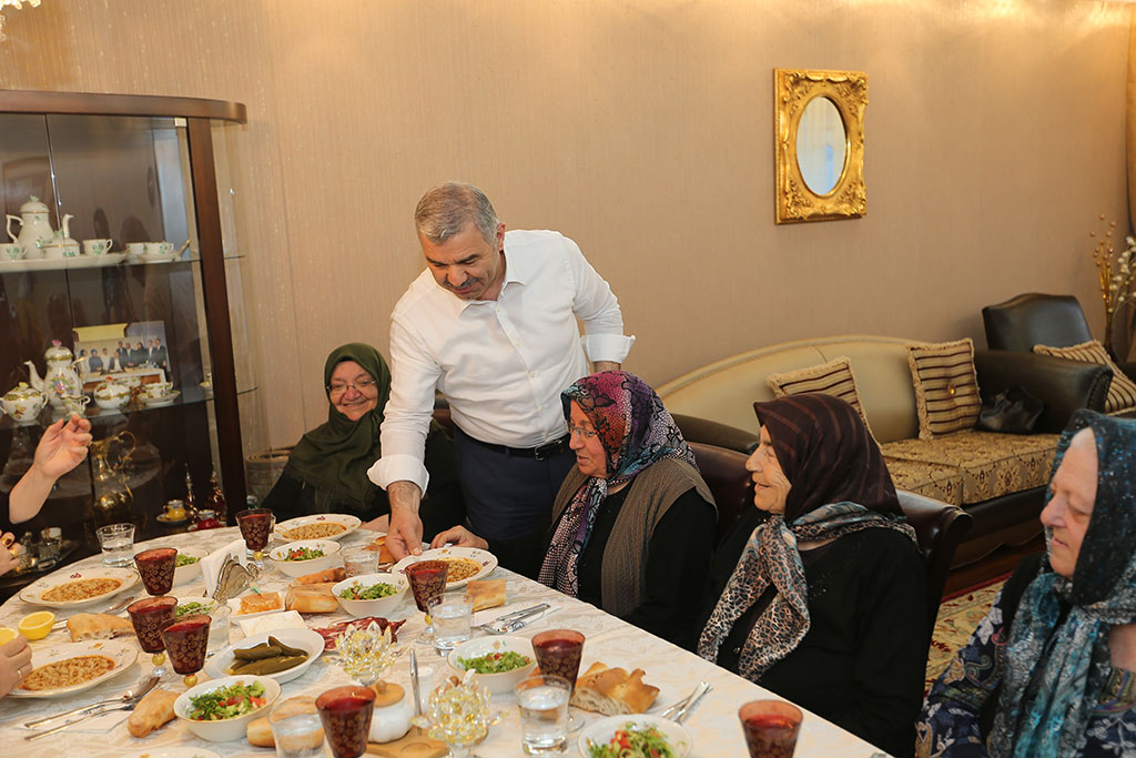 Büyükşehir Belediye Başkanı Mustafa Çelik, YADES projesi kapsamında evlerinde bakım hizmeti verilen yaşlılarımıza bir başkandan çok daha fazla hassasiyet gösteriyor. Eşi İkbal Çelik ile birlikte birçok kez yaşlılarımızı evlerinde ziyaret eden ve onlarla yakından ilgilenen Başkan Mustafa Çelik, onları bu kez kendi evinde ağırladı. Başkan Çelik, şehrimizin bereket kaynağının yaşlılarımızın duaları olduğunu belirtti. Büyükşehir Belediye Başkanı Mustafa Çelik, annesi Sevim Çelik ve eşi İkbal Çelik ile birlikte kendi ifadesiyle en özel misafirlerini ağırladı. YADES projesi kapsamında evlerinde hizmet verilen yaşlılarımızı akşam yemeğinde ağırlayan Başkan Çelik, onları kapıda karşıladı, ellerini öptü ve onları ağırlamaktan şeref duyduğunu belirtti. “YAŞLILARIMIZIN DUALARI ŞEHRİMİZİN BEREKETİ” Misafir ettiği yaşlılarla tek tek ilgilenen Başkan Mustafa Çelik, eşi İkbal Çelik’ten “Gelininiz” ifadesiyle bahsetti ve “Bizler evlatlarınızız” diyerek, yaşlılara hürmetin ne denli önemli olduğuna vurgu yaptı. Huzurun ve bereketin kaynağının yaşlıların duası olduğunu dile getiren Başkan Çelik, “Daha önce sizleri evinizde ziyaret ederek sofranıza konuk olduk. Bu kez gelininiz İkbal Hanım sizleri yemeğe davet etmek istedi. Evimize şeref verdiniz. Düğünlerde nikah kıyarken de ifade ettiğim gibi yaşlılarımızın duaları evlerimizin bereket ve huzur kaynağı. Şehrimizin de bereket kaynağı sizlersiniz. Dualarınızla yaptığımız işleri bereketlendiriyorsunuz” dedi. YADES’e Aile ve Sosyal Politikalar Bakanlığı ile bir yıllığına başladıklarını; ancak bir yılın sonunda bu projeye son vermeyerek Büyükşehir olarak devam ettirdiklerini ifade eden Başkan Çelik, 542 yaşlımızın evlerindeki ihtiyaçları gidermek için çalıştıklarını söyledi ve tek isteklerinin duaları olduğunu belirtti. Tüm yaşlılarımız da her zaman duacı olduklarını dile getirdi. BAŞKAN ÇELİK, YEMEK SERVİSİNİ BİZZAT YAPTI Misafir ettiği yaşlılarımızla tek tek görüşen, ihtiyaçlarını soran, dertlerini dinleyen Başkan Mustafa Çelik, her türlü ihtiyaçlarında yanlarında olacaklarının mesajını verdi. Büyükşehir Belediye Başkanı Mustafa Çelik, eşi İkbal Çelik’in yaptığı yemeklerin servisini de bizzat üstlendi. Yemek sonrası çay ikram edilirken Çelik ailesinin komşuları da sürpriz yaparak yaşlılarımız için çeşitli hediyeler getirdiler.