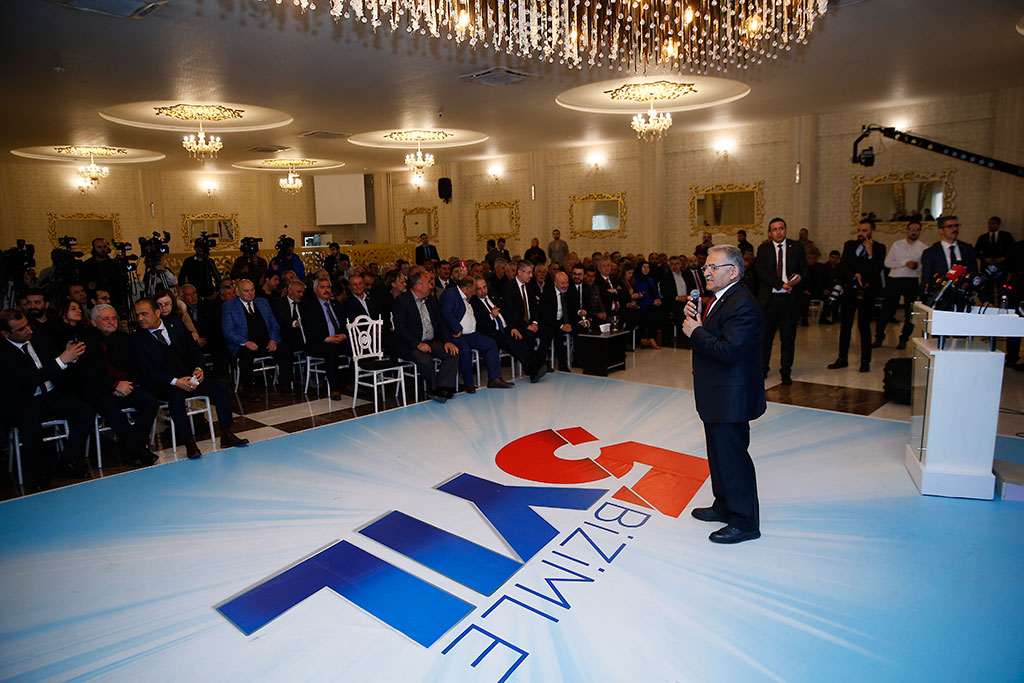 Kayseri Büyükşehir Belediye Başkanı Dr. Memduh Büyükkılıç, Kocasinan Belediye Başkanı Ahmet Çolakbayrakdar’ın beş yıllık icraatlarını değerlendirdiği toplantıya katılarak Kayseri’deki uyumlu çalışmaya vurgu yaptı. Başkan Büyükkılıç, bu uyumun her alanda kendisini gösterdiğini söyledi. Büyükşehir Belediye Başkanı Memduh Büyükkılıç, Kayseri’de 16 ilçe belediyesiyle bir ve beraber çalıştıklarını ifade ederek, “16 ilçemizin hepsi birbirinden güzel ve hepsi ayrı bir değer. Belediye başkanlarımızla uyum kültürü içinde çalışıyoruz. Kayseri’nin 10 milletvekili ile de uyum içindeyiz. Çalışkan belediye başkanlarımızın gayreti bizleri de daha fazla koşmaya yönlendiriyor. Biz de gece demeden gündüz demeden şehrimizi daha iyi noktalara taşımak için gayret ediyoruz” dedi. Konuşmasında Ankara’da yaptığı temaslara da değinen Büyükşehir Belediye Başkanı Büyükkılıç, Kültür ve Turizm Bakanı Mehmet Nuri Ersoy ve bazı genel müdürlerle görüşmeler yaptığını belirtti. Kültür ve Turizm Bakanı Ersoy ile verimli bir görüşme yaptıklarını dile getiren Başkan Büyükkılıç, kültür ve sanat alanında daha fazla destek beklediklerini ifade ettiğini ve Bakan Ersoy’un da gerekli talimatları verdiğini kaydetti.