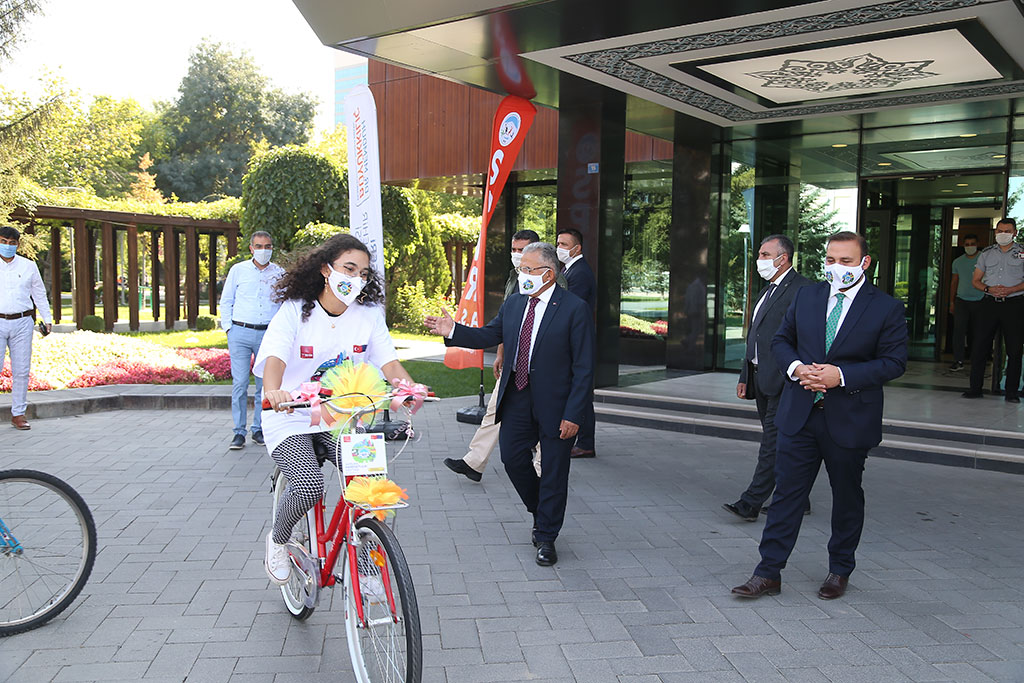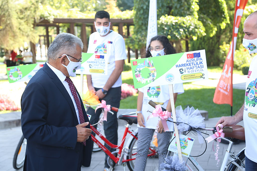 Kayseri Büyükşehir Belediye Başkanı Dr. Memduh Büyükkılıç, Avrupa Hareketlilik Haftası etkinlikleri kapsamında bisikleti teşvik etmek ve farkındalık oluşturmak amacıyla düzenlenen çekilişle belirlenen 5 kişiye bisiklet hediye etti. Başkan Büyükkılıç, “Bisiklet kültürünün ruhunu daha çok yaşatacağız” dedi. Büyükşehir Belediyesi Spor A.Ş’nin “Avrupa Hareketlilik Haftası” kapsamında “Teşvik ve Farkındalık Oluşturma” amacıyla yürüttüğü etkinlikler vatandaşların yoğun ilgisiyle karşılaşıyor. Bu kapsamda düzenlenen bisiklet çekilişinin talihlileri de Başkan Büyükkılıç’ın katıldığı törenle bisikletlerine kavuştu. Başkan Büyükkılıç, Büyükşehir Belediyesi olarak Avrupa Hareketlilik Haftası’nda sosyal medya üzerinden gerçekleştirilen çekilişin gençleri teşvik edeceğini belirterek, bundan sonra nice çekilişlerle bisiklet kültürünün ruhunu Kayseri’de daha çok yaşatacaklarını ifade etti. Başkan Büyükkılıç, “ Avrupa Hareketlilik Haftası nedeniyle Türkiye genelinde düzenlenen etkinliklere biz de Kayseri olarak destek veriyoruz. Spor A.Ş.’miz değişik etkinlikler yapıyor. Yaptığı çekilişlerle bu şanslı dostlarımıza birer tane bisiklet hediye ediyor. Ama yetmez. Yapacağımız çekilişlerle daha nice bisikletler vererek gençlerimizi teşvik edelim. Kayserimiz düz bir şehir. O anlamda bisiklet kültürüne en müsait şehirlerden birisi. Zaman zaman ben de bisiklete biniyorum. Bisiklet kullanım açısından vatandaşlarımızı toplu taşımadan uzaklaştırırken bir yandan da hareket etmelerini sağlıyoruz. Bundan dolayı gerek ilçe belediyelerimiz, gerekse Büyükşehir Belediyesi olarak bisiklet yollarının artırılması yönünde de çalışmalarımızı sürdürüyoruz. Yapılan bu etkinliklerin yanı sıra Recep Tayyip Erdoğan Millet Bahçesi projesinde de bisiklet yollarımıza çok önem verdiğimizi buradan paylaşmak istiyorum” dedi. Bisikletli spora vatandaşların katılımını sağlamak amacıyla Kayseri’de değişik etkinlikler yapmaya devam edeceklerini kaydeden Başkan Büyükkılıç, sağlıklı bir ulaşım sistemi olan bisikletin Kayseri’de ulaşımı da rahatlatacağını ifade ederek, “KAYBİS, 90 kilometrelik bisiklet yolu, 51 adet bisiklet istasyonu, tramvaydan inen vatandaşlarımıza hizmet ediyor. Bu kültürün gelişmesine, öğrencilerimize, çalışanlarımıza destek olmaya çalışıyoruz. Kayserimizi seviyoruz, vatandaşlarımızı seviyoruz. Onların güvenini boşa çıkarmamaya gayret ediyoruz” diye konuştu. Başkan Büyükkılıç, daha sonra bisiklet çekilişi talihlileri, Halit Toprakkar, Mesut Usta, Müşerref Bıyık, Eda Varinli ve Şevval Özbolat’a bisikletlerini Spor A.Ş Genel Müdürü İbrahim Somtaş ile birlikte vererek, kazasız belasız kullanmaları temennisinde bulundu.