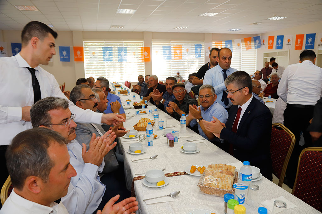 Kayseri Büyükşehir Belediye Başkanı Dr. Memduh Büyükkılıç, AK Parti İl Başkanlığı tarafından Sarıoğlan ve Özvatan ilçelerinde yapılan Vefa Buluşması’na katıldı. Teşkilatlara mesajlar veren Başkan Büyükkılıç, bugüne kadar AK Parti’nin hizmet davası için mücadele eden herkese teşekkür etti. Büyükşehir Belediye Başkanı Memduh Büyükkılıç, AK Parti İl Başkanı Şaban Çopuroğlu ile birlikte Vefa Buluşmasına katılmak üzere önce Sarıoğlan, ardından da Özvatan ilçelerine gitti. Başkan Büyükkılıç, Sarıoğlan’da çiçeklerle karşılandı. Büyükkılıç, kendisine takdim edilen çiçeği AK Parti İlçe Kadın Kolları Başkanı’na verdi. Geçmişte farklı kademelerde görev yapmış kişileri buluşturan toplantıda partililere seslenen Başkan Memduh Büyükkılıç, “Bugüne kadar insanlığa hizmet sevdamızın bayrağını taşıdınız. Bu anlayışı birbirimize güvenir ve kenetlenerek geleceğe taşırsak bir anlam ifade eder. Bulunduğumuz yerler hizmet makamı. Bulunduğumuz yeri kibirlenme, insanlara tepeden bakma yeri gibi görürsek Allah da, kulu da razı olmaz. İnsanları Sayın Cumhurbaşkanımızın ifade ettiği gönül belediyeciliği ile buluşturur ve onların sıkıntısını giderirsek işte o zaman Allah da razı olur kulu da razı olur” diye konuştu. SARIOĞLAN’DAN SONRA ÖZVATAN’DA VEFA Büyükşehir Belediye Başkanı Dr. Memduh Büyükkılıç, Özvatan ilçesinde de vatandaşların büyük ilgisiyle ve çiçeklerle karşılandı. Özvatan’da düzenlenen Vefa Buluşması’nda da AK Parti’nin hizmet davası ile ilgili açıklamalarda bulunan Başkan Büyükkılıç, “Bizler fedakarlık üzerine kurulu bir anlayışla bugünlere geldik. Bu dava için bugüne kadar mücadele eden, fedakarlık yapan herkese teşekkür ediyorum” dedi.