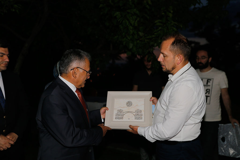 Kayseri Büyükşehir Belediyesi bünyesindeki KAYMEK tarafından Bosna Hersek’in Mostar şehrinde açılan kurslara katılan öğrenciler, Büyükşehir Belediye Başkanı Dr. Memduh Büyükkılıç’a teşekkür ziyaretinde bulundular. Bosnalı kardeşlerimizle Talas Gençlik Merkezi’nde bir araya gelen Başkan Büyükkılıç, Bosna’nın gönlümüzde ayrı bir yeri olduğunu ifade ederek, “Bosna’yı kendimizden ayrı görmüyoruz. Allah birliğimizi beraberliğimizi daim etsin” dedi. Kayseri Büyükşehir Belediyesi’nin, Yunus Emre Enstitüsü ile birlikte açtığı KAYMEK kurslarıyla gönül köprüsü kurduğu ve aynı zamanda kardeş şehrimiz olan Mostar’dan bir heyet ilimize geldi. Bosnalı gençler, Büyükşehir Belediye Başkanlığının ilk günlerinde Bosna’ya bir mektup göndererek gönül bağlarımızın kuvvetlenerek devam edeceğini ifade eden Başkan Memduh Büyükkılıç’a bizzat teşekkür etmek istediklerini belirttiler. Büyükşehir Belediye Başkanı Büyükkılıç, Bosnalı gençlerle Talas Gençlik Merkezi’nde bir araya geldi. Başkan Büyükkılıç, Talas Gençlik Merkezi’nin muhteşem Kayseri manzarası eşliğinde gençlerle sohbet etti ve Kayseri ile ilgili düşüncelerini sordu. Kayseri’den giden eğitmenlerden Kayseri ile ilgili çok şey öğrendiklerini ifade eden Bosnalı Gençler, Kayseri’nin çok güzel bir şehir olduğunu belirttiler. Mostar’daki KAYMEK kurslarına Bosnalı gençlerin büyük ilgi gösterdiğini de ifade eden gençler, bu kursların çok faydalı olduğunu dile getirdiler. “BOSNA’NIN BİZİM İÇİN AYRI BİR ANLAMI VAR” Büyükşehir Belediye Başkanı Memduh Büyükkılıç da Bosna’nın Türk insanının gönlünde ayrı bir yere sahip olduğunu ifade ederek, “Sizleri Kayseri’de görmekten, Aliya İzzetbegoviç’in neslini burada misafir etmekten onur duyuyoruz. Gerek Bosna gerekse kardeş şehrimiz Mostar bizim için ayrı bir anlam ifade etmekte. Farklı zamanlarda Bosna’yı ziyaret ettim. Bosna’yı bizden bir parça olarak gördüm. KAYMEK ile hem sizlere faydalı olmak hem de Müslüman Türk kültürü ile buluşmanıza katkı sağlamak amacıyla çaba gösteriyoruz. Bu anlamda çok güzel dönüşümler alıyoruz. Bu da bizi yüreklendiriyor. Oradaki çalışmalarımızı daha da geliştirerek sürdürme konusunda irade gösteriyoruz. Bosna’yı kendimizden ayrı hissetmiyoruz. Allah birliğimizi beraberliğimiz bozmasın” diye konuştu. “TÜRKİYE GÜÇLÜ OLURSA BOSNA DA GÜÇLÜ OLUR” Bosna heyeti ile birlikte gelen Mostar Kuran Okuma Merkezi Müdürü Süleyman Cikotiç de Türkiye için her zaman dua ettiklerini ifade ederek, “Sizin burada güçlü olmanız bizim Bosna’da güçlü olmamız demektir. Birlik beraberlikle daha da güçlü olacağız” dedi.