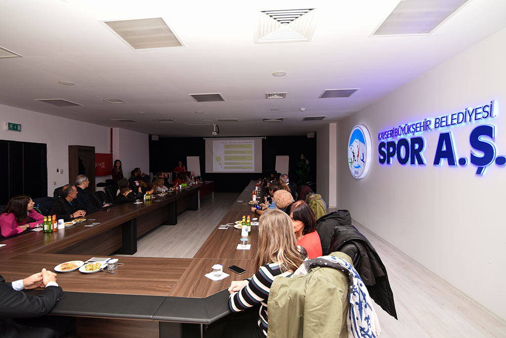 Kayseri Büyükşehir Belediyesi Spor A.Ş. tarafından “Spor A.Ş. Bizim Okulda” etkinliklerine bu kez ERASMUS projesi kapsamında farklı ülkelerden ilimize gelen öğretmenler ve öğrenciler de katıldı. Yapılan etkinliklere hayran kalan misafirler, bu etkinliklerin başka şehirlerde olmadığını ifade ederek Kayserililerin şanslı olduğunu dile getirdiler. Yahya Kemal Beyatlı Ortaokulu’nun ERASMUS Projesi ile Kayseri’ye davet ettiği Avrupa’nın çeşitli ülkelerinden gelen eğitmen ve öğrenciler ilk gün Kadir Has Kongre merkezinde gerçekleşen "Spor A.Ş. Bizim Okulda'' projesine misafir oldu. Organizasyona katılan misafirlerle birlikte etkinlik boyunca dans ve spor aktivitesi gerçekleştirildi. Ziyaretin ikinci gününde ise Kadir Has Stadyumu’nu gezen misafirlere öncelikle "Doğasında Hareket Var" sloganı ile gerçekleştirilen spor aktiviteleri hakkında sunumlar yapıldı. Öğretmen ve öğrencilere daha sonra ise Spor A.Ş. diyetisyeni tarafından "okul çağında beslenme" konusunda bilgiler verildi. Kayseri ve Spor A.Ş.’nin etkinlikleri hakkında görüşlerini ifade eden öğretmen ve öğrenciler başka şehirlerde böylesi aktivitelerin olmadığını dile getirerek Kayserililerin şanslı olduğunu belirttiler. Spor A.Ş. Genel Müdürü İbrahim Somtaş da ERASMUS projesi kapsamında şehrimize gelen eğitmen ve öğrencilere Spor A.Ş. etkinliklerine katıldıkları için teşekkür ederek gelecekte de bu tür projelere memnuniyetle ev sahipliği yapabileceklerini kaydetti.