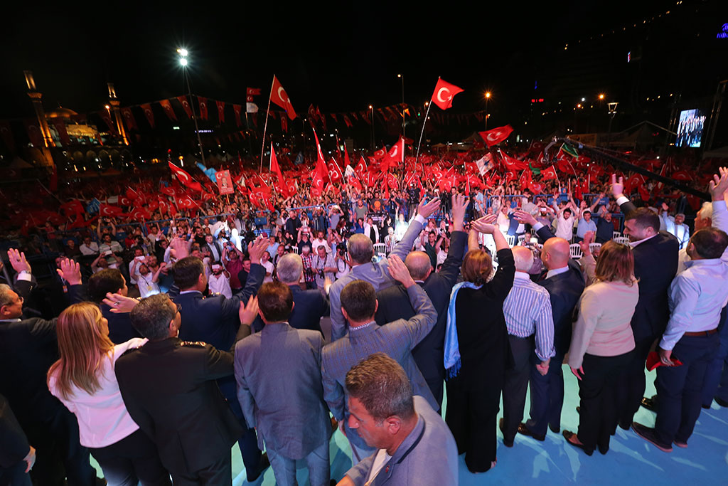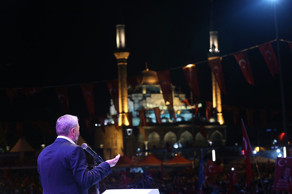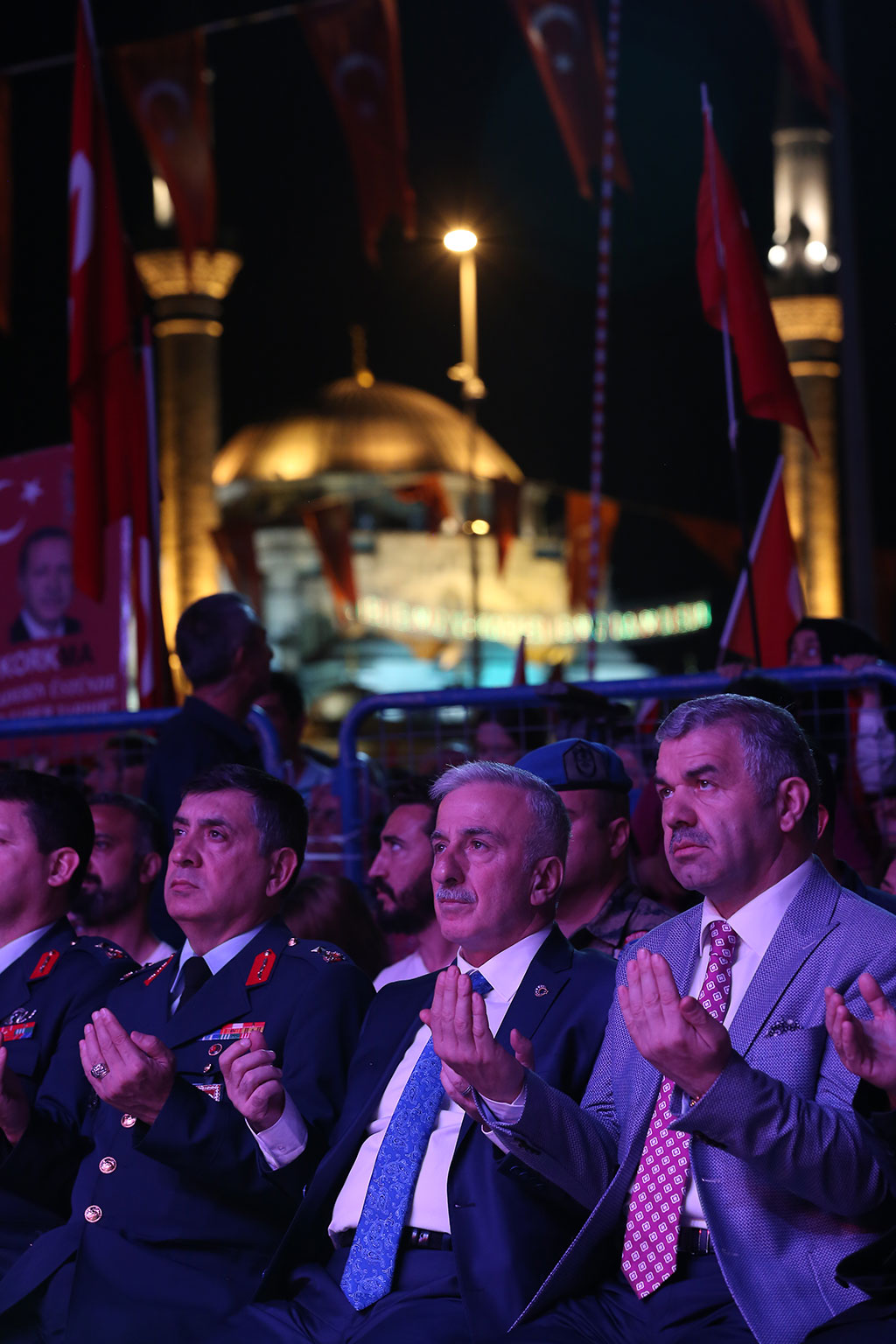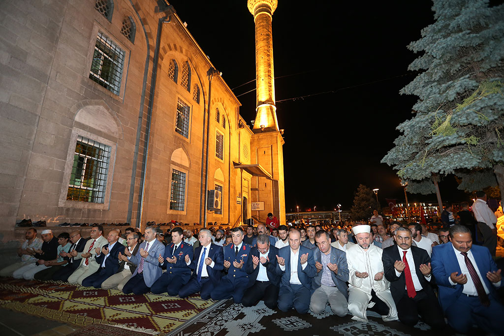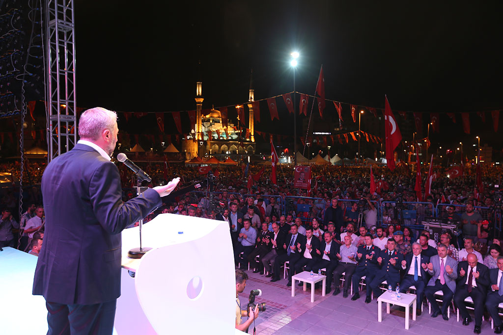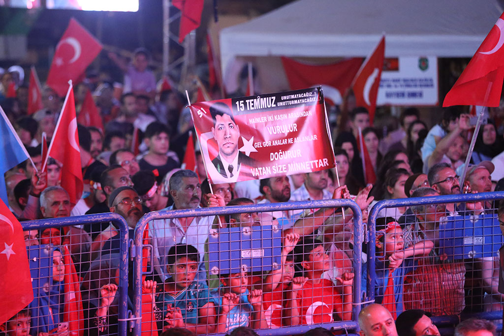 15 Temmuz’un yıldönümünde Kayseri yine meydanlara aktı. Cumhuriyet Meydanı’nda yüz binler 15 Temmuz Şehitler ve Demokrasi Günü nedeniyle bir araya geldi. Büyükşehir Belediye Başkanı Mustafa Çelik, sabah namazına kadar Cumhuriyet Meydanı’nda vatandaşlarla birlikteydi. 15 Temmuz’da bu milletin gösterdiği kahramanlığı vurgulayan ve şehitlerimizi anan Başkan Çelik, “Her şehidimiz ve gazimiz bu ülkenin göğsünde parıldayan birer şeref madalyasıdır” dedi. Büyükşehir Belediye Başkanı Mustafa Çelik, 15 Temmuz’un yıldönümünde düzenlenen etkinliklerin ilk dakikalarından sabah namazına kadar Kayseri halkıyla birlikte Cumhuriyet Meydanı’ndaydı. Başkan Çelik, etkinliklerin ilk dakikalarında Cumhuriyet Meydanı’nı gezerek 15 Temmuz ruhu ile meydana gelen vatandaşlarla görüştü. Halkla selamlaşan, fotoğraflar çektiren Başkan Çelik, gecede Büyükşehir Belediyesi’nin ikramlarından olan döner ekmek dağıttı. 15 Temmuz etkinlikleri İl Müftüsü Şahin Güven’in yaptırdığı dua ile başladı. Etkinliklere Büyükşehir Belediye Başkanı Mustafa Çelik’in yanı sıra Vali Süleyman Kamçı, Garnizon Komutanı Tuğgeneral Ercan Teke, 12'nci Hava Ulaştırma Ana Üs Komutanı Tuğgeneral Selçuk Aygün, siyasi parti il başkanları, üniversite rektörler, adli ve idari yargı temsilcileri, ilçe belediye başkanları, bürokratlar, siyasiler, oda ve dernek başkanları katıldı. Yöneticiler, meydanı dolduran yüz binlerle birlikte şehitlerimiz, bu vatanın bölünmez bütünlüğü, milletimizin birlik ve beraberliği için dualar ettiler. Vali Süleyman Kamçı’nın konuşmasının ardından, İstanbul’a canlı olarak bağlanıldı ve Cumhurbaşkanımız Recep Tayyip Erdoğan’ın yaptığı konuşma Kayseri’de de yüz binlere izletildi. Gecede bir konuşma yapan Büyükşehir Belediye Başkanı Mustafa Çelik, sözlerine “Demokrasi Kahramanları, Milli İradenin yılmaz neferleri, Bu vatanı kendini bilmez densizlere, ihanet örgütlerine, bir takım şer güçlerin uşaklarına, terör odaklarına, kendi milletine kurşun sıkan ve sıktıran alçaklara asla ve asla teslim etmemeye yemin etmiş vatan, millet, bayrak ve ezan sevdalıları, farklı siyasi görüşler taşımalarına rağmen Şehrimizin dört bir yanından Cumhuriyet Meydanı’na gelen Aziz Kayserililer” diye hitap ederek başladı. “KAYSERİ FARKINI GÖSTERDİ” Kayseri’nin bir yıl önce olduğu gibi yine farkını gösterdiğini ifade eden Başkan Çelik, “Böylesi aziz bir topluluğa hitap etmekten, böylesi kahraman bir milletin ferdi olmaktan, böylesi bir Kayseri’de yaşamaktan ve bu meydanı dolduran vatan, millet sevdalılarına hizmet etmekten onur duyuyorum, gurur duyuyorum” dedi. 15 Temmuz 2016’da, tarihimizde görmediğimiz bir hıyanetle karşılaştıĞIMIZI VURGULAYAN Başkan Mustafa Çelik sözlerini şöyle sürdürdü: “Vatansız, milletsiz, densiz bir alçak, bir takım şer güçlerin de desteğiyle aziz vatanımızı karıştırmaya kalktı. Bu vatanın evlatlarını zehirleyerek bu milletle karşı karşıya getirdi. Yılanın başı, terörün başı, hıyanetin başı olan bu iblis yıllarca hizmet sevdalıları yetiştiriyorum diyerek bu milleti aldattı. 15 Temmuz’da gördük ki, milletine silah doğrultan hainler yetiştirmiş. Gördük ki, milletin meclisini bombalayan, halkın üzerine çekinmeden tank süren alçaklar yetiştirmiş. Gördük ki, bu milletin koynunda yaşayan yılanlar yetiştirmiş. Bu hainlere her türlü alçaklığı öğretmiş. Ama Türk Milletinin nasıl aziz bir millet olduğunu öğretememiş. 15 Temmuz ve sonrasında öğrendiler.” “ANADOLU, MAZLUMLARIN MERHAMET LİMANIDIR” 15 Temmuz’da 40 yıllık bir hıyanet şebekesinin çökertildiğini dile getiren Büyükşehir Belediye Başkanı Çelik, “Onlar bize, evlatlarımıza, devletimize, vicdanımıza, tevhidin kendisi olan Kuranı Kerim’e ihanet ettiler. FETÖ ve uşakları şimdi mahkeme salonlarında adam gibi kendilerini savunacaklarına kıvırtarak yalan söylüyorlar. Artık bu milleti kandıramayacaksınız, aldatamayacaksınız. Bu millet ne mal olduğunuzu öğrendi” diye konuştu. Konuşmasında ülkemizin önemini de vurgulayan Başkan Mustafa Çelik, sözlerine şöyle devam etti: “Bir yıl önce bu meydanlarda omuz omuza verdik. Görüş farklılıklarımızı bir kenara bıraktık ve birlik olduk. Tanklarıın toplarını iman dolu göğsümüzde söndürdük. Tüm dünyaya zulme nasıl durulduğunu gösterdik. Milletimiz 15 Temmuz gecesini destansı dirilişe döndürdü. Bu milletin kıblesi Kabe’dir. Bu ülke açların Halil İbrahim Sofrasıdır. İnsanımız, üşüyen bedenlerin saadet güneşi, Anadolu ise mazlumların merhamet limanıdır. O zulmün maşası olan hainler bu limanı yıkmak, bu sofrayı dağıtmak, bu güneşi söndürmek istediler. Ama onların hesabından daha büyük bir hesap vardı, o da Rabbimin hesabı. Evet, şehitlerimiz ve gazilerimiz var; ama her şehidimiz ve gazimiz bu ülkenin göğsünde parıldayan birer şeref madalyası oldu. Bugün yine tüm meydanlar tıklım tıklım doldu. Bu ruh bir diriliş ruhudur. Bu ruh yüzyılın ihanetine karşı kazanılmış yüzyılın zafer ruhudur.” Büyükşehir Belediye Başkanı Çelik’in konuşmasının ardından AK Parti ve MHP İl Başkanları ile bazı konuşmacılar halka hitap etti. Gecede ayrıca ağıtlar seslendirildi, geçen yıl 15 Temmuz gecesi olduğu gibi salalar verildi. Büyükşehir Belediye Başkanı Mustafa Çelik, konuşmaların ardından gecenin ilerleyen saatlerinde bir kez daha Cumhuriyet Meydanı’nın karış karış dolaştı. Başkan Çelik, vatandaşlarla tek tek ilgilendi, selam verdi, hatır sordu ve zaman zaman da onlarla oturup çay içti, sohbet etti. 15 Temmuz etkinlikleri sabah namazına kadar devam etti. Vali Süleyman Kamçı, Başkan Mustafa Çelik, komut