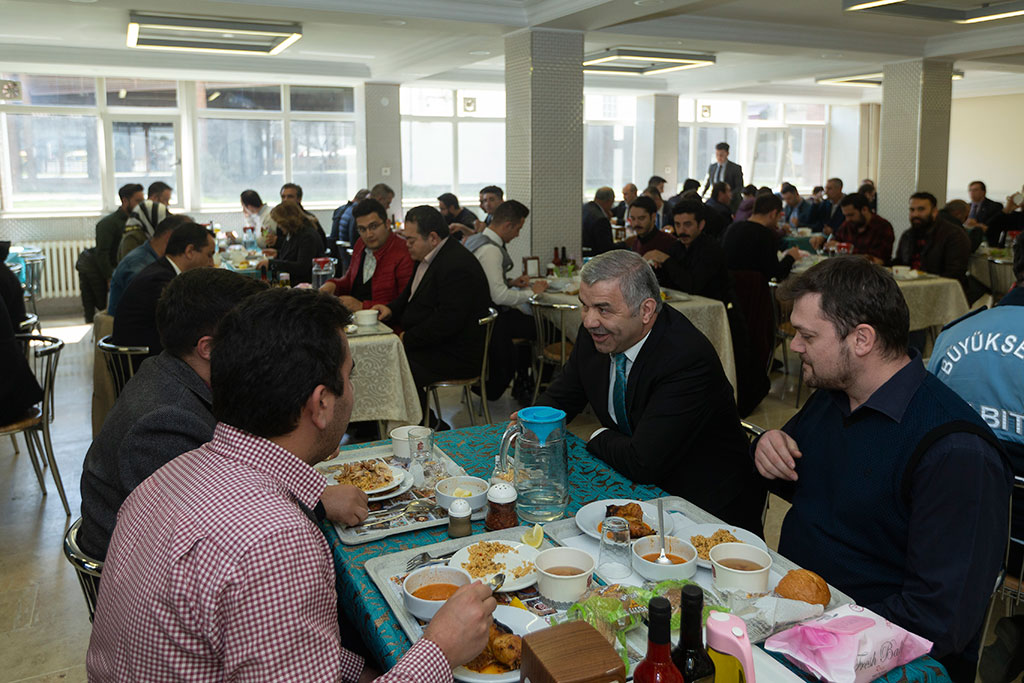 Büyükşehir Belediye Başkanı Mustafa Çelik, personel yemekhanesinde çalışanlarla bir araya geldi. Başkan Çelik, yaptığı veda konuşması sırasında duygulu anlar yaşadı. Büyükşehir Belediye Başkanı Mustafa Çelik, öğle yemeğini personel yemekhanesinde yedi. Sıraya girip yemeğini kendisi alan Başkan Mustafa Çelik, Büyükşehir personeliyle birlikte yemek yedi, sohbet etti. Burada bir konuşma yapan Başkan Çelik, 4 yıllık görevi süresince mesai arkadaşlarıyla sahada ya da çalıştıkları birimde sık sık beraber olduklarını söyledi. Veda cümleleri sırasında zor anlar yaşayan Başkan Çelik, “Bu şehre hep birlikte hizmet ettik. Yaptığımız her işte sizlerin emeği var. Bundan sonra da huzurlu ve sağlıklı bir şekilde hizmet etmenizi diliyorum. Rabbim hepinizin, yolunu, bahtını açık etsin” ifadelerini kullandı.