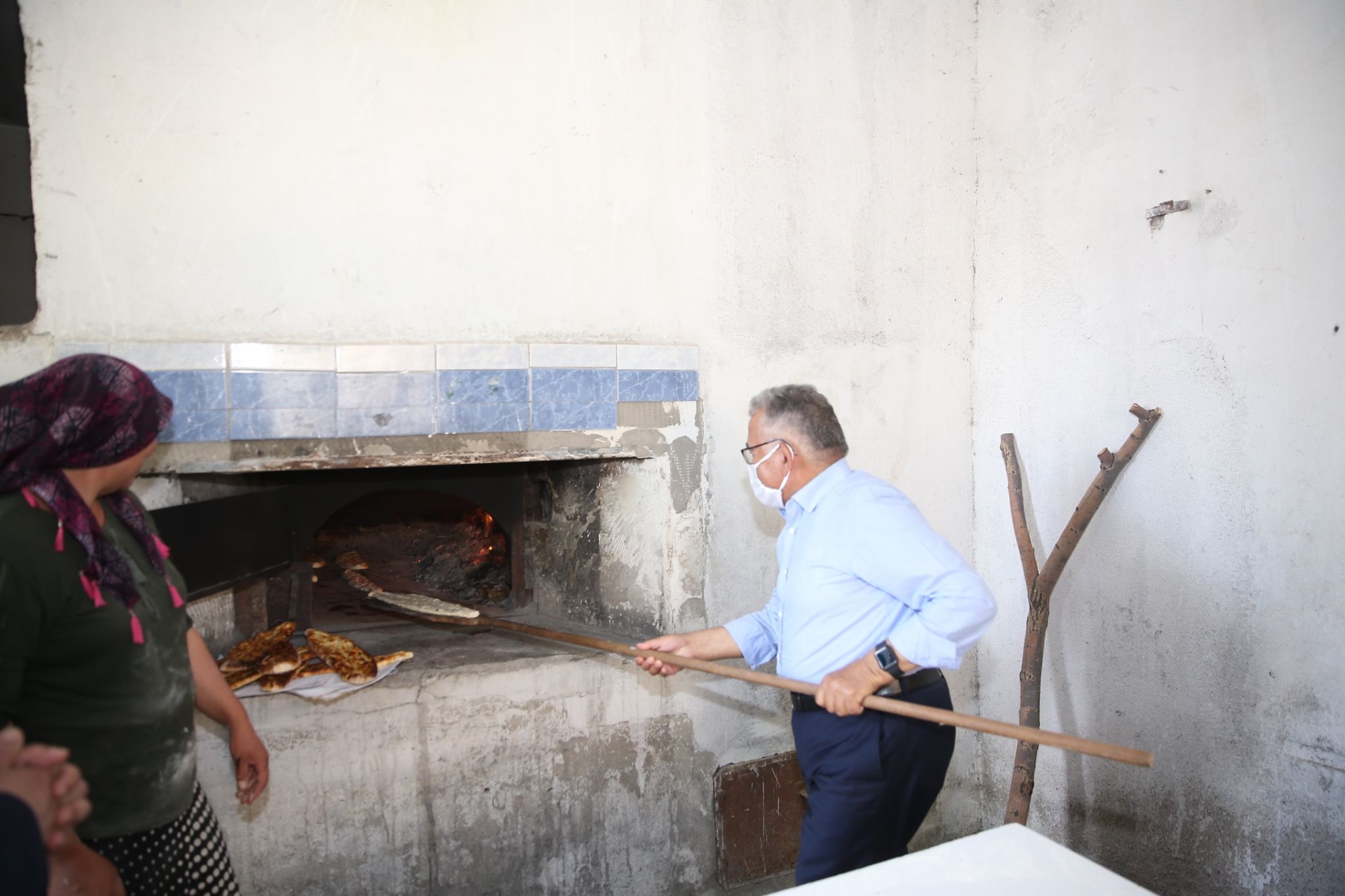 kadınları ziyaret ederek, fırında pide pişirdi.