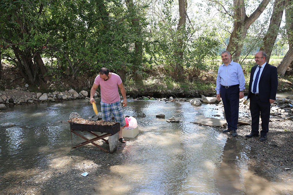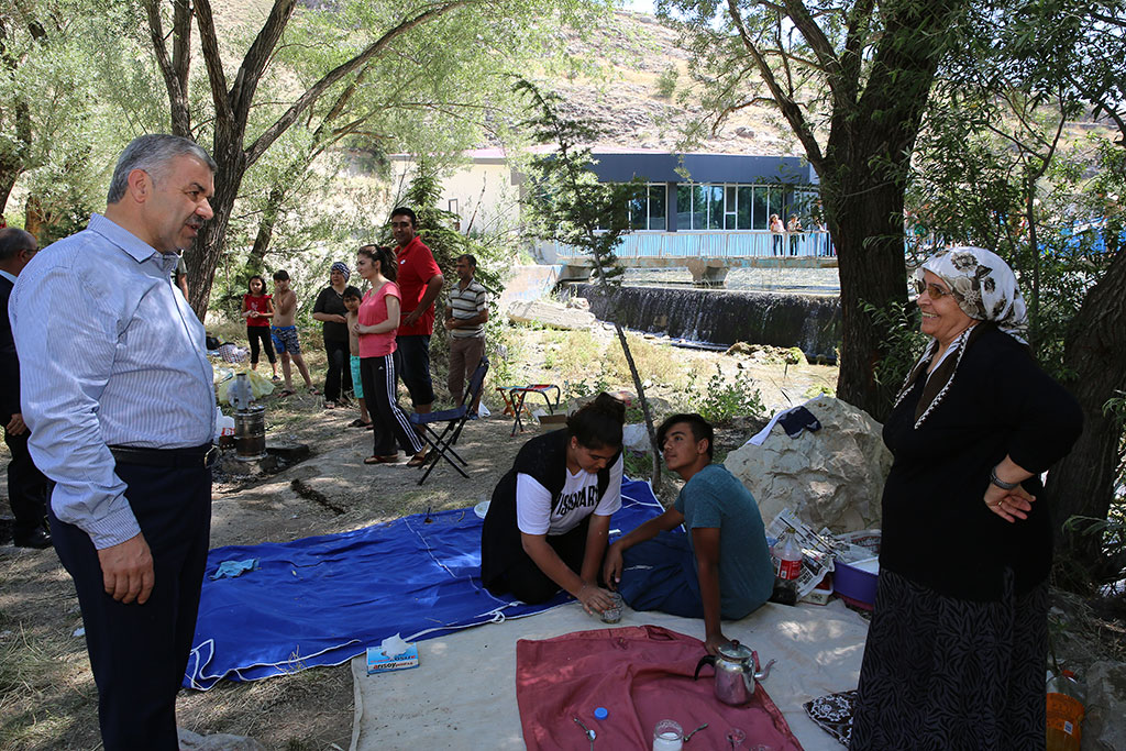 Bünyan’ın Pınarbaşı bölgesi, Büyükşehir Belediyesi’nin üstlendiği projeyle şehrin en güzel alanlarından birisi haline gelecek. Büyükşehir Belediye Başkanı Mustafa Çelik, Bünyan ziyaretinde Pınarbaşı bölgesini de gezdi ve bölgede yapılacak çalışmalarla ilgili incelemeler yaptı. Büyükşehir Belediye Başkanı Mustafa Çelik, Bünyan’ın en güzel alanı olan Pınarbaşı bölgesinde detaylı bir şekilde incelemelerde bulundu. Başkan Çelik, Bünyan Belediye Başkanı Şinasi Gülcüoğlu ve Büyükşehir Belediyesi bürokratlarıyla birlikte bölgeyi gezerek yapılacak yeni projeden bahsetti. “ÖZEL BİR PROJE HAZIRLANDI” KASKİ’nin bu bölgeye yaptığı içme suyu deposunu da gezen Başkan Çelik, bölgenin su kapasitesine ilişkin bilgiler aldı. Pınarbaşı mesire alanında piknik yapan vatandaşlarla da görüşen Başkan Çelik, bu bölge için özel bir projeyi hayata geçireceklerini söyledi. Bölgenin sadece Bünyan’ın değil tüm şehrin kullanımına sunulacağını vurgulayan Başkan Mustafa Çelik, “Bünyan’ın en gözde doğal güzelliklerinden olan, civarın içme suyu ve sulama suyunun kaynak noktasındayız. Ekiplerimizle incelemelerde bulunduk. Bu güzelliğe daha da güzellik katacak yeni bir proje hazırladık. Bu bölgeyi sadece Bünyan’ın değil tüm Kayseri’nin kullanabileceği bir alan yapacağız. Rabbim böyle güzellikler vermiş. Yapacağımız çalışmalarla artı güzellikler ilave edeceğiz. Sıcak soğuk piknik alanları yapacağız. Halen gençlerin yüzdüğü alanı temizleyerek doğal havuz haline getireceğiz. Yeşil dokuyu artıracağız ve çiçekler dikeceğiz. Sert zeminler en az olacak şekilde olacak” dedi. Bünyan Belediye Başkanı Şinasi Gülcüoğlu da yapılacak olan çalışma nedeniyle şahsı ve ilçesi adına teşekkür etti. BAŞKAN ÇELİK PİKNİKÇİLERLE SOHBET ETTİ Büyükşehir Belediye Başkanı Mustafa Çelik, Bünyan-Pınarbaşı bölgesini ziyaretinde mesire alanını da gezerek piknik yapmak için gelenlerle sohbet etti. Vatandaşlardan bölgeyle ilgili görüşlerini alan, piknik yapmak için nerelerden geldiklerini soran Başkan Çelik, sıcak ve samimi sohbetler gerçekleştirdi.