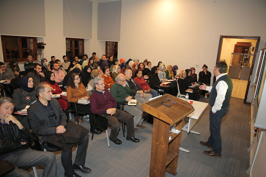Büyükşehir Stratejik Araştırma Merkezi (BÜSAM) bünyesindeki Şehir Akademi’de mekan seminerleri devam ediyor. Hafta sonu iki ayrı seminer gerçekleştirildi. Şehir Akademi tarafından düzenlenen seminerlerde hafta sonu ilk olarak Prof. Dr. Köksal Alver tarafından “Mekan ve Toplum” konulu bir seminer verildi. Tarihi Kayseri Lisesi Binası konferans salonunda verilen seminerde mekanların insan için önemini anlatan Prof. Dr. Alver, “İnsan, yaşamak ve korunmak için bir yeri mekan edinmek zorunda. Biyolojik olarak varlığını sürdürmesinin yegane yolu budur. Fakat insanlar aynı zamanda sosyo kültürel varlıklardır. Dolayısıyla biyolojik zorunluluğun sonucunda ürettiği şeylere mana ve anlam yükler. Bize ait olan tüm şeyler sadece ihtiyaçlarımızı giderecek şeyler değildir. Onları bir sembol haline getiririz. Mekan aynı zamanda medeniyet algımızın, düşüncemizin, inancımızın, değerlerimizin de yaşayabilmesini gerektirecek bir olgu haline gelmiştir” dedi. Şehir Akademi’de Prof. Dr. Ali Uzay Peker de “Selçuklu Mimarisinde Anlam” konulu bir seminer verdi. Prof. Dr. Peker, mimariyi inançların ne derecede etkilediğini örneklerle ortaya koydu.