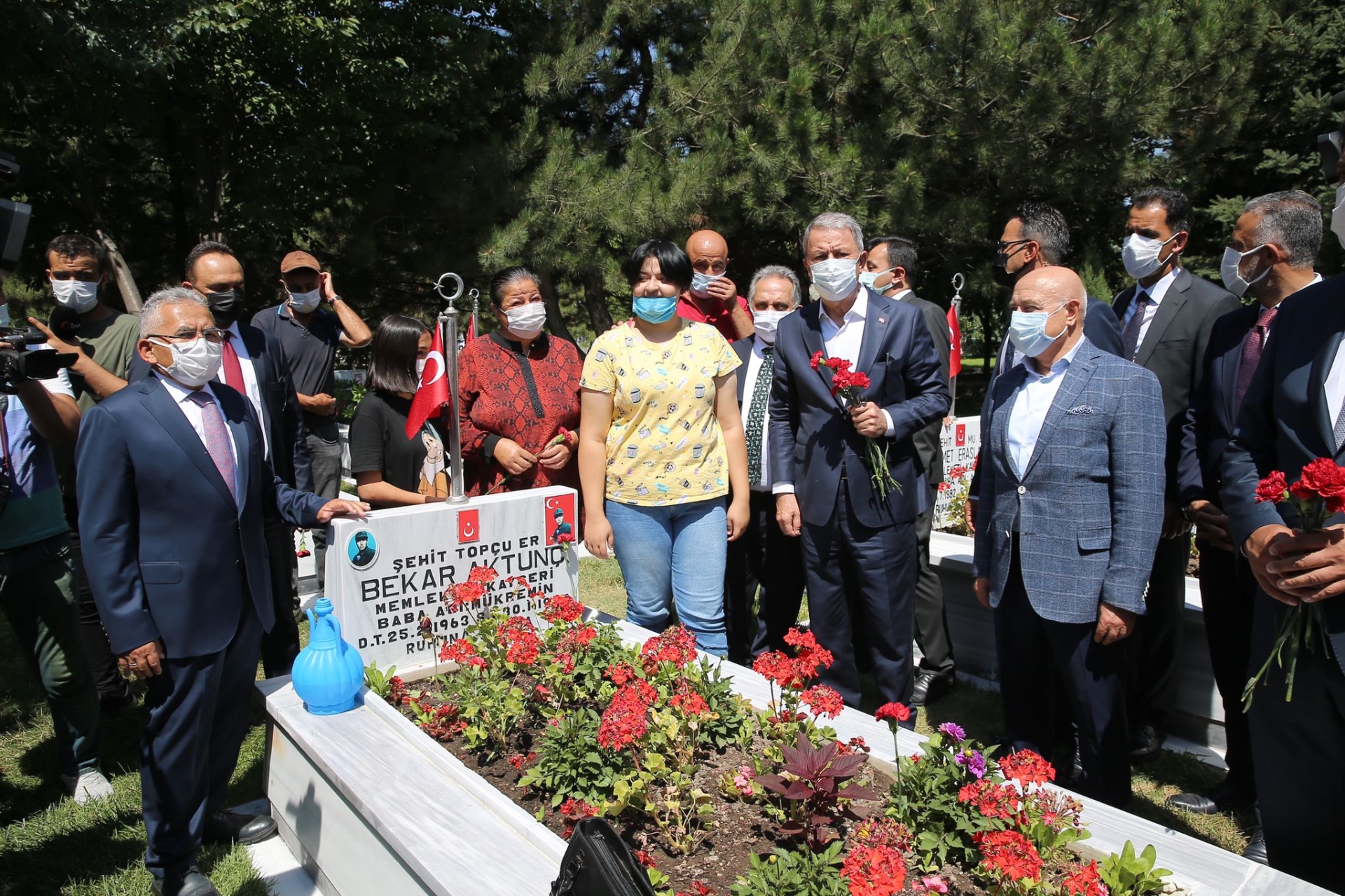 Savunma Bakanı Hulusi Akar ve il protokolü ile birlikte Kartal Şehitliği ve