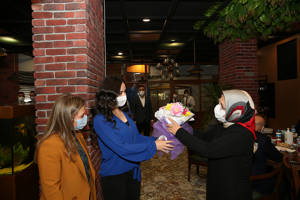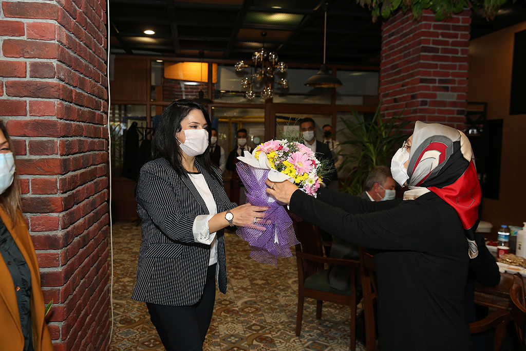 Kayseri Büyükşehir Belediye Başkanı Dr. Memduh Büyükkılıç, eşi Dr. Necmiye Büyükkılıç ile birlikte AK Parti Kadın Kolları Yönetim Kurulu Toplantısı’na katıldı. Toplantıda, Necmiye Büyükkılıç, AK Parti Kadın Kolları’nda yer alan ve ana kademeye görevlendirilen dört kadına vefa örneği göstererek şimdiye kadar yaptıkları çalışmalardan dolayı çiçek verdi, yeni görevlerinde başarılar diledi. AK Parti Kadın Kolları Yönetim Kurulu Toplantısı’nda, Büyükşehir Belediye Başkanı Dr. Memduh Büyükkılıç ve eşi Necmiye Büyükkılıç’ın yanı sıra AK Parti İl Başkanı Şaban Çopuroğlu, AK Parti Kadın Kolları Başkanı Emine Timuçin, Melikgazi Belediye Başkanı Mustafa Palancıoğlu, Kocasinan Belediye Başkanı Ahmet Çolakbayrakdar ve başkanların eşleri katıldı. Toplantıda konuşma yapan AK Parti Kadın Kolları Başkanı Emine Timuçin, Büyükşehir Belediye Başkanı Dr. Memduh Büyükkılıç ve eşinin kendilerini hiçbir zaman yalnız bırakmadıklarını belirterek, şunları söyledi: “Bugün burada bizleri yalnız bırakmayan her daim yanımızda olan İl Başkanımız Şaban Çopuroğlu, Büyükşehir Belediye Başkanımız Memduh Büyükkılıç ve Kocasinan, Melikgazi Belediye Başkanlarımızın önderliğinde yönetim kurulu toplantımızı gerçekleştirdik. Gerçekten yanımızda olduklarından dolayı teşekkür ediyorum. Pandemi dolayısıyla yaptığımız toplantılarımızı maske, mesafe ve temizlik kurallarına uyarak yapıyoruz. Bugün burada yaptığımız toplantının bir önemi de aramızdan ana kademelere geçen yönetim kurulu arkadaşlarımız var. Her zaman söylüyorum kadın kolları olarak yönetimlerimizde, görev alan bütün arkadaşlarımızla bizler partimizin davasını yaparken, diğer taraftan da siyasetçi kadın yetiştiriyoruz. Bu siyasetçi kadınlarımızı ana kademeye taşıdık. Onları bugün burada tebrik etmek için bir araya geldik” dedi. Başkan Büyükkılıç’ın eşi Necmiye Büyükkılıç, toplantının ardından AK Parti Kadın Kolları’nda yer alan ve ana kademeye görevlendirilen dört kadına vefa örneği göstererek çiçek vererek teşekkür etti, yeni görevlerinde başarılar diledi. AK Parti Kadın Kolları Başkanı Emine Timuçin de, Başkan Büyükkılıç’ın başarılarının ardında Necmiye Büyükılıç’ın imzası olduğunu belirterek, Başkan Büyükkılıç adına Dr. Necmiye Büyükkılıç’a çiçek verdi.