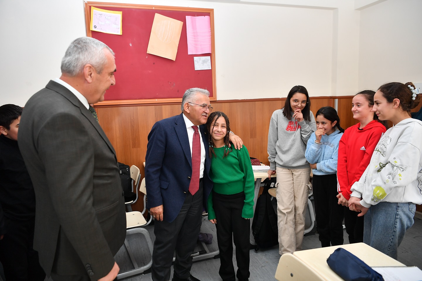 Okul girişinde öğrenciler tarafından çiçeklerle karşılanan Büyükkılıç, sınıfları gezerek, okulun öğretmenler odasında geleceğin mimarı öğretmenlerle bir araya geldi. Başkan Büyükkılıç, daha sonra okulun konferans salonuna geçerek program çerçevesinde buluştuğu gençler tarafından alkışlar eşliğinde coşkulu bir şekilde karşılandı.