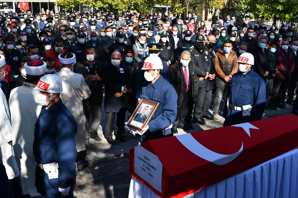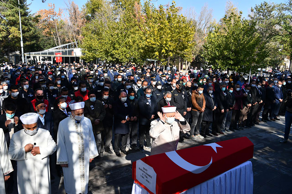 Şırnak'ın Silopi ilçesinde şehit olan Piyade Teğmen Burhan Sönmez (29), memleketi Kayseri’de son yolculuğuna uğurlandı. Kayseri Büyükşehir Belediye Başkanı Dr. Memduh Büyükkılıç şehidin cenaze törenine katılarak, şehit ailesine taziyelerini iletti. Şırnak'ın Silopi ilçesi Irak sınır hattında, teslim olacak teröristleri kararlaştırılan bölgeye sevk etmek amacıyla Habur Çayı'na giren Piyade Teğmen Burhan Sönmez (29), suya kapıldı. Sönmez, kaldırıldığı hastanede şehit oldu. Piyade Teğmen Burhan Sönmez’in naaşı memleketi Kayseri’ye gece yarısı getirildi. Şehidimiz Sönmez şehit ailesi ile birlikte, Vali Şehmus Günaydın ve Büyükşehir Belediye Başkanı Memduh Büyükkılıç ve askeri erkan tarafından askeri havaalanında karşılandı. Bugün baba evinden son kez helallik alınan şehidin cenaze namazı Kalemkırdı Camii’nde kılındı. Cenaze namazına katılan Büyükşehir Belediye Başkanı Dr. Memduh Büyükkılıç, şehidin babası Mehmet, annesi Hatice ve 3 ay önce evlendiği eşi Tuğba Sönmez’e baş sağlığı dileyerek, taziyelerini iletti. İl Müftüsü Şahin Güven'in kıldırdığı namazın ardından şehidin Türk bayrağına sarılı naaşı, Kartal Şehitliği'nde toprağa verildi. Şehit cenazesine şehit aileleri ile yakınları ve Başkan Büyükkılıç’ın yanı sıra Kayseri Valisi Şehmus Günaydın, Tarım ve Orman Bakan Yardımcısı Mustafa Aksu, Garnizon Komutanı Tuğgeneral Aziz Adalı, İl Emniyet Müdürü Kamil Karabörk, ilçe belediye başkanları, siyasi parti ve sivil toplum kuruluşlarının temsilcileri, askeri erkan ile vatandaşlar katıldı.