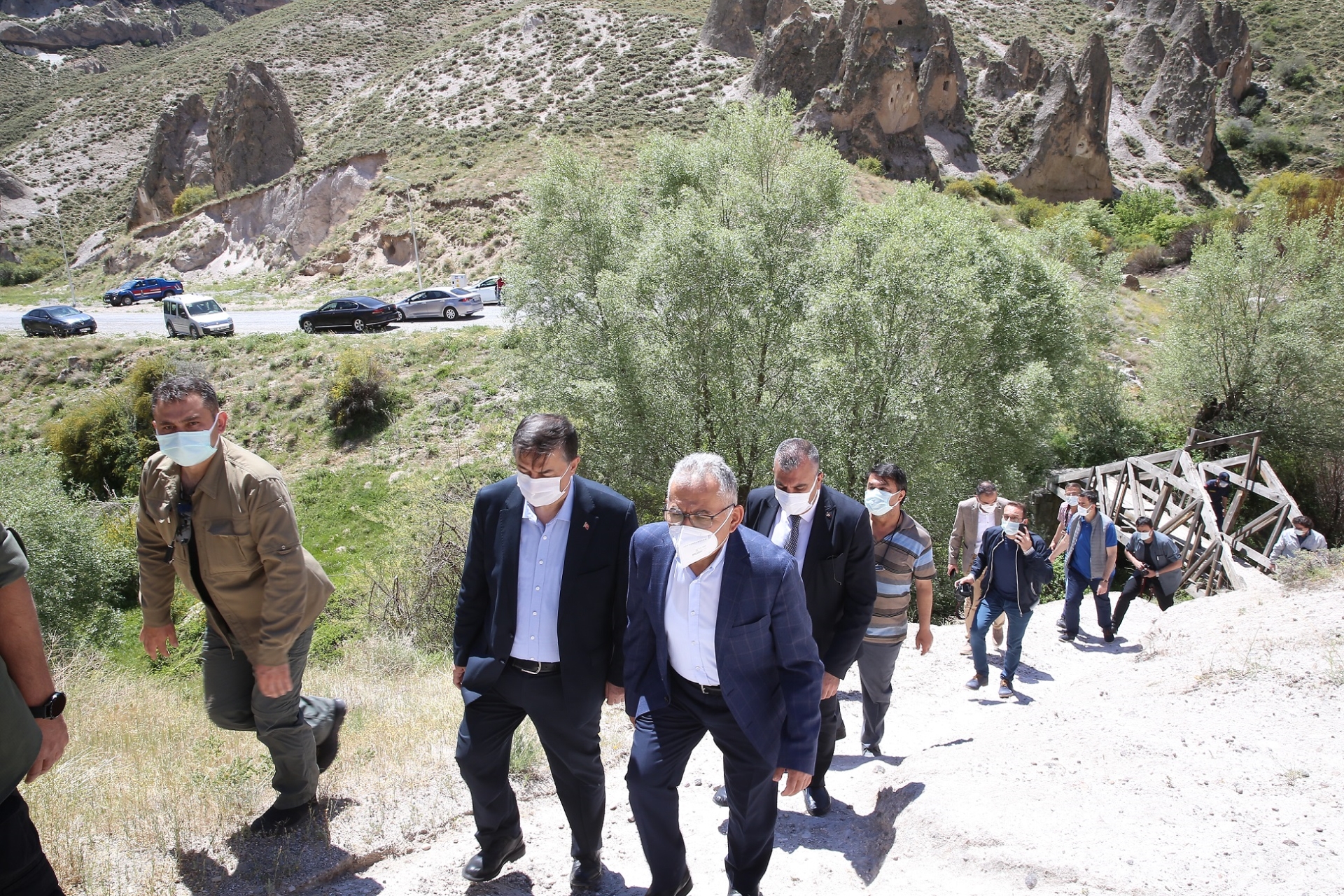 Dr. Memduh Büyükkılıç, Vali Şehmus Günaydın ile birlikte, kayadan oyma