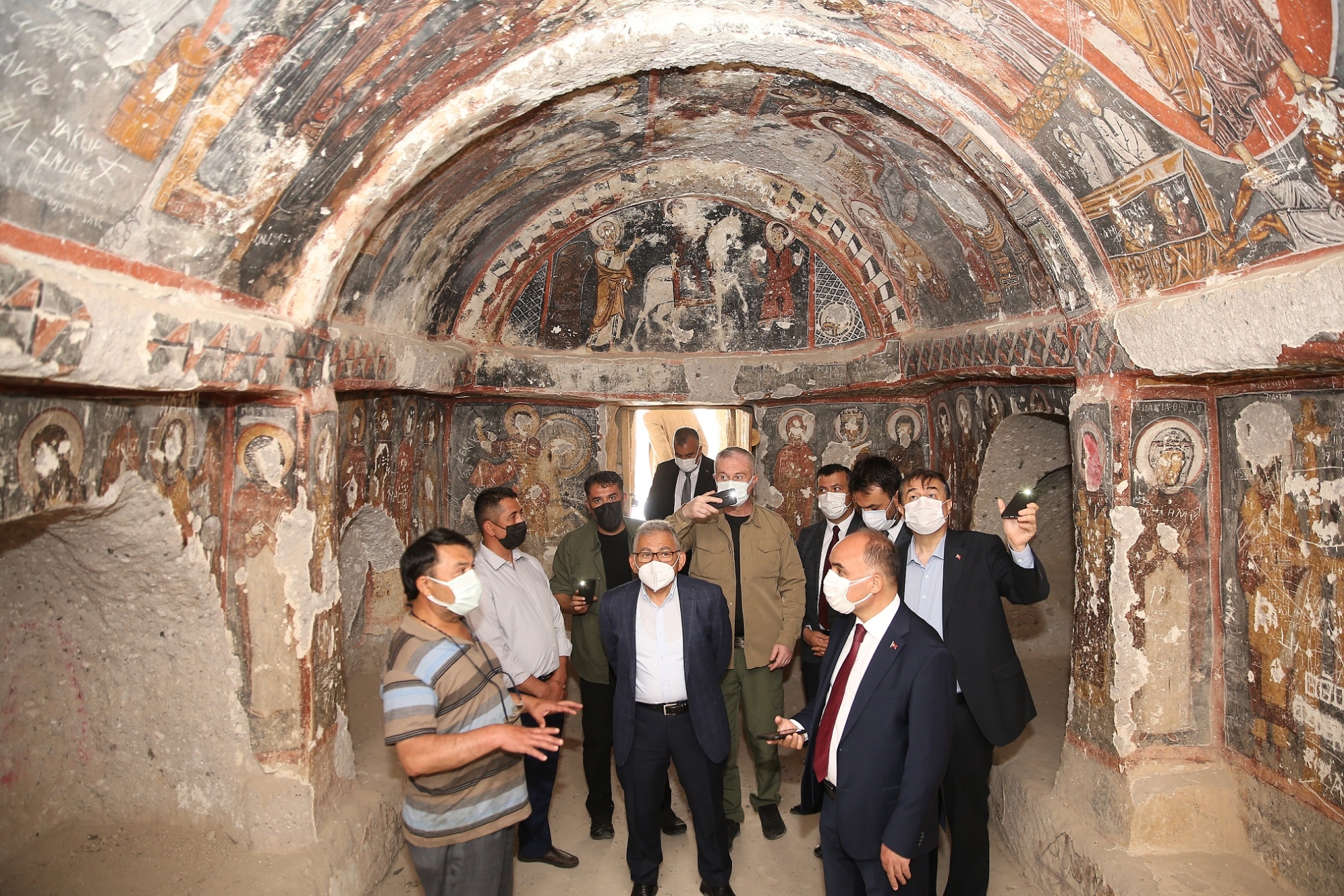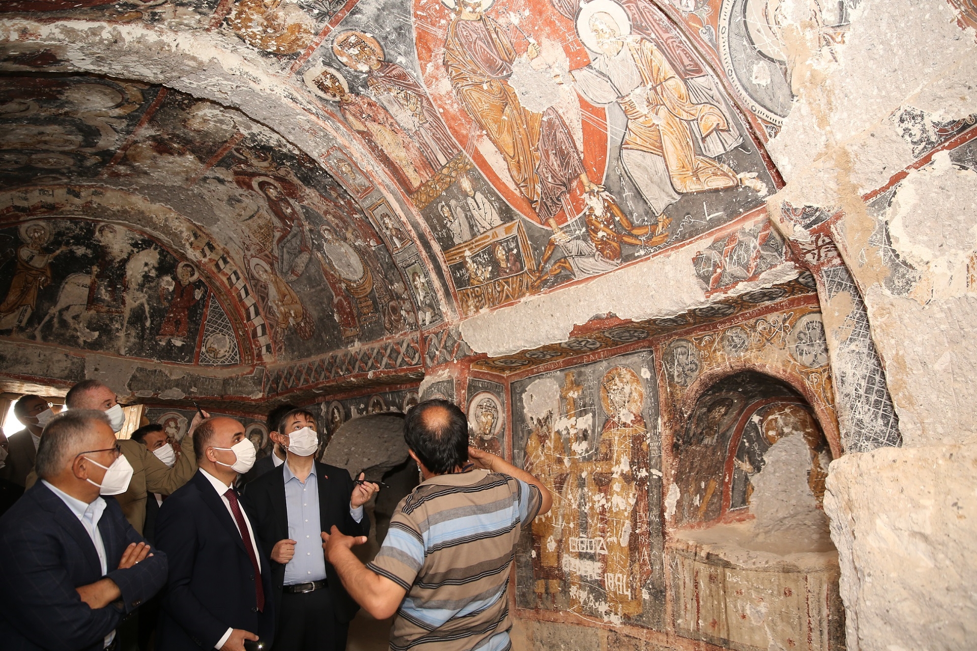 Kilisesi’ndeki duvar fresklerini inceledi.