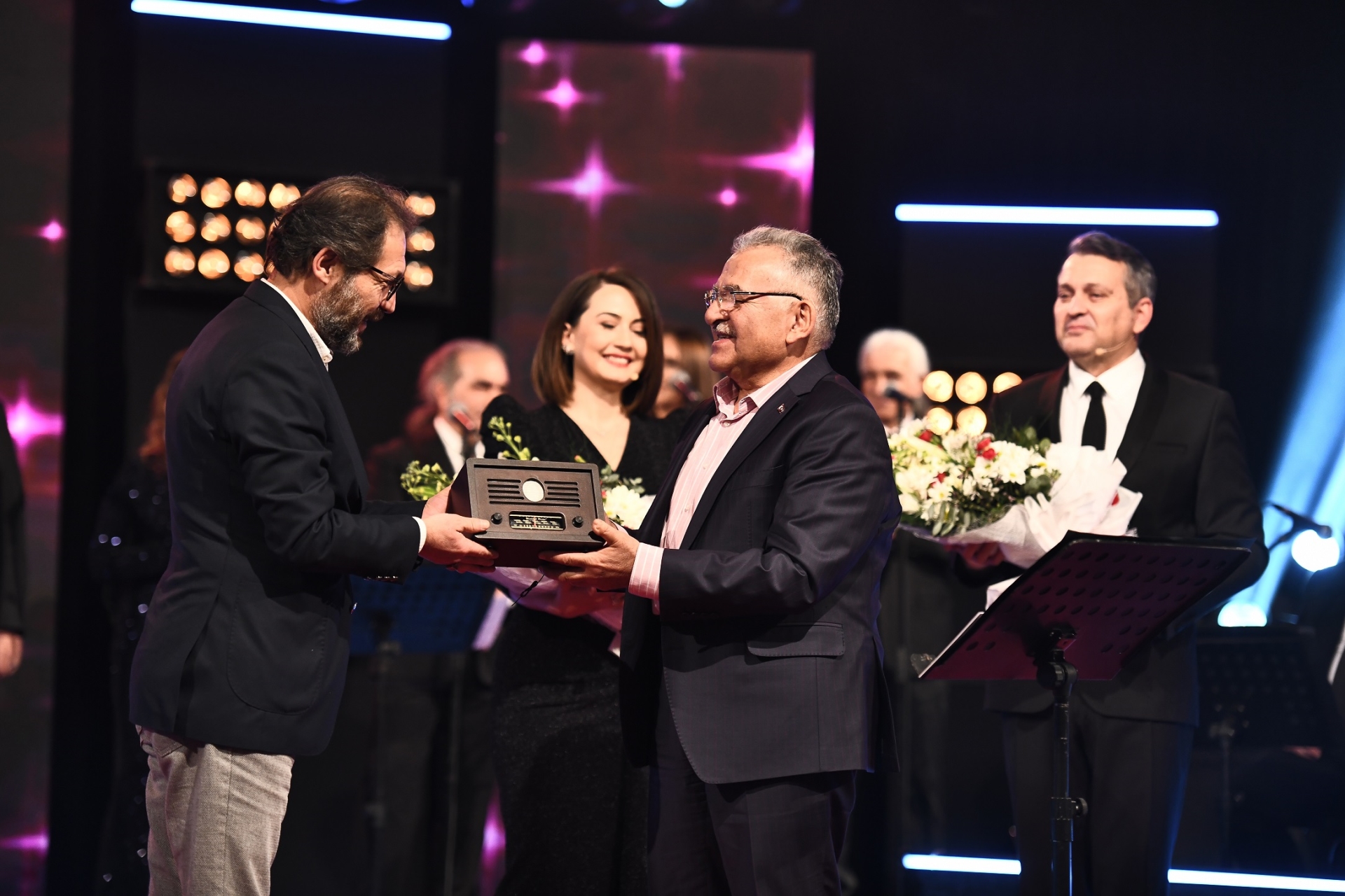 Program sonunda sahneye çıkarak, katılımcılara çiçek takdim eden Başkan Büyükkılıç’a da TRT radyosu hediye edildi.
