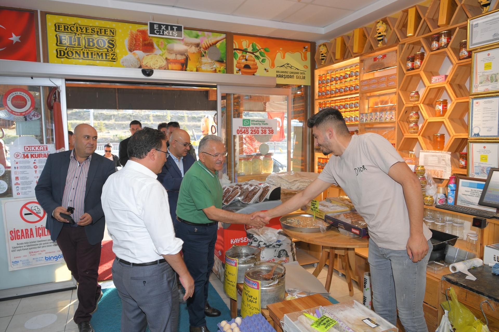 esnafları da ziyaret eden Başkan Büyükkılıç ve Vali Çiçek, vatandaşlar ve