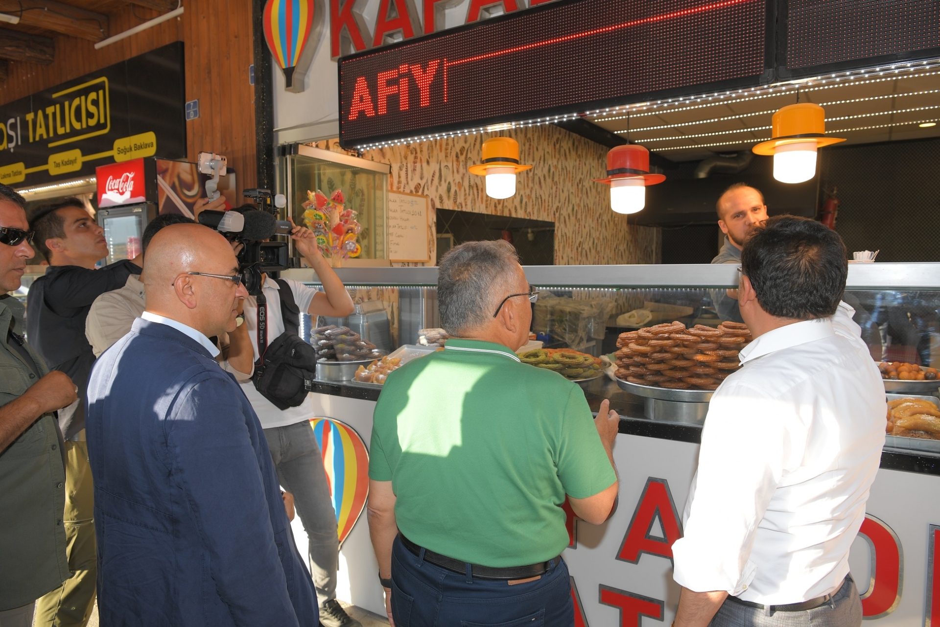 esnaflarla sohbet ederek, işletmecilere hayırlı işler temennisinde bulundu.