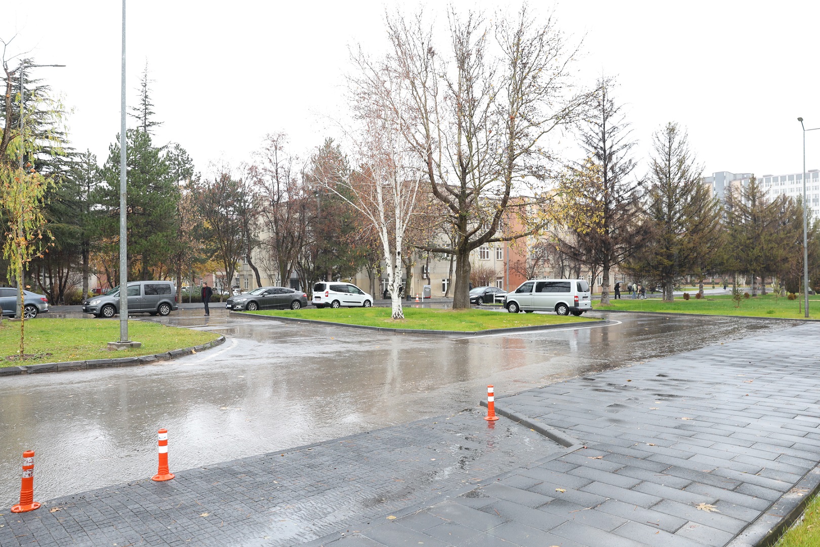 yaya yolları yenilenirken, yeşil alan genişletildi. Yaya yolları, otoparklar,