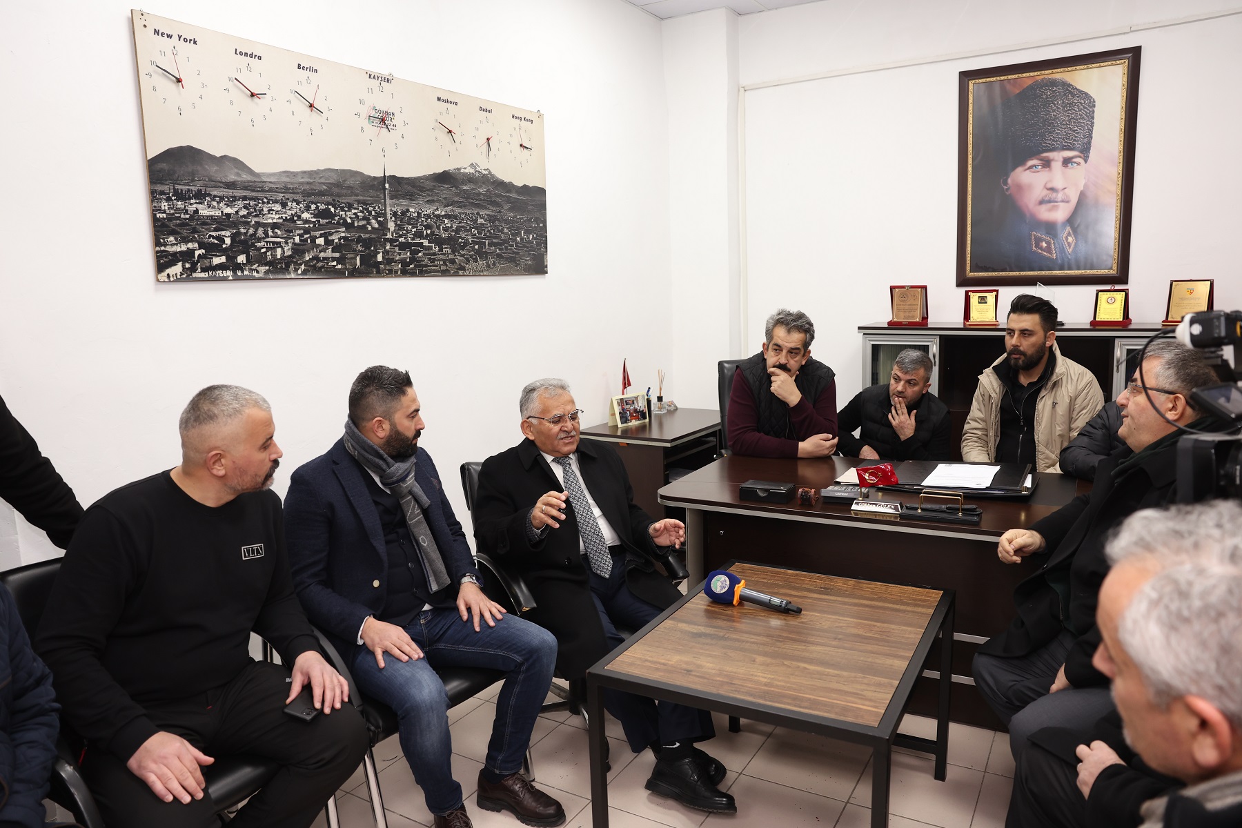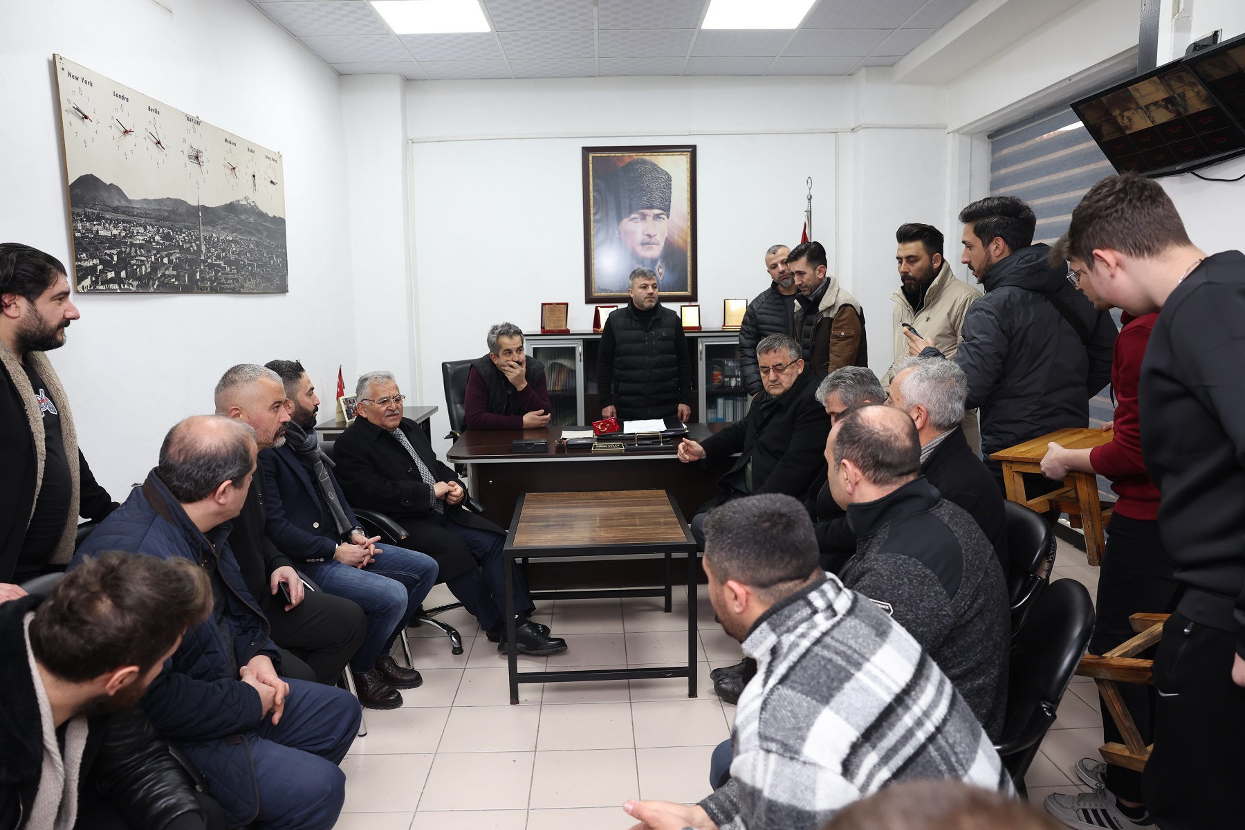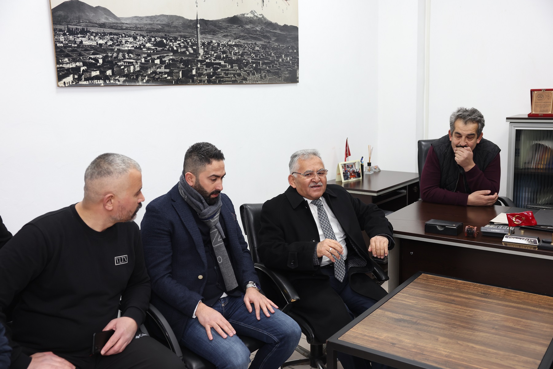 Başkan Büyükkılıç’a esnaf ziyaretinde, Genel Sekreter Hüseyin Beyhan, Genel Sekreter Yardımcıları Hamdi Elcuman, Serdar Öztürk, Bayar Özsoy ve Ali Hasdal da eşlik etti.