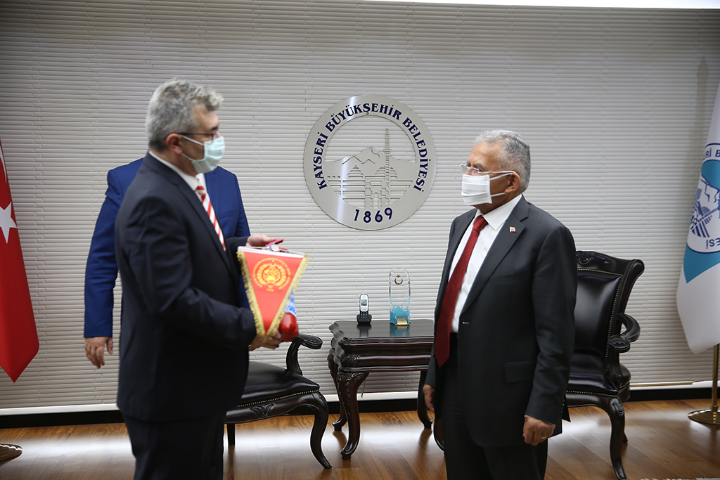 Büyükşehir Belediyesi İtfaiye Teşkilatı, İtfaiye Haftası dolayısıyla Büyükşehir Belediye Başkanı Dr. Memduh Büyükkılıç’ı ziyaret etti. Ziyarette İtfaiye Teşkilatının çok önemli hizmetler verdiğini ifade eden Başkan Büyükkılıç, “Bizim için stratejik yapı olan itfaiyemiz olmazsa olmazımız” dedi. Büyükşehir Belediye Başkanı Dr. Memduh Büyükkılıç’ı İtfaiye Haftası dolayısıyla ziyaret eden Büyükşehir Belediyesi İtfaiye Daire Başkanı Mustafa Metin Kızılkan, Başkan Büyükkılıç’a haftanın anlamına istinaden itfaiye flaması ile yangın söndürme cihazı hediye etti. Daire Başkanı Kızılkan ve teşkilat mensupları ile bir süre görüşen ve İtfaiye Haftası’nı tebrik eden Başkan Büyükkılıç, itfaiyenin önemine işaret ederek, şunları kaydetti: “Bizim için stratejik yapı olan itfaiyemiz olmazsa olmazımız. Her şeyden önce burada kardeşimizin fedakarca yaptığı çalışmaları görüyoruz, biliyoruz. Canlarını ortaya koymak suretiyle nerede bir sıkıntı olsa orada kendilerini buluyorlar. O sıkıntıyı gidermeye gayret ediyorlar. Yakın zamanda hatırlanacağı üzere Elazığ’da ve Malatya’da olan depremde ekibimiz oralarda fedakarca çalışmalar yaptı. Değerli bakanlarımızda ziyaretleri sırasında takdirlerini beyan ettiler. Çok şükür Kayserimize yakışan şekilde daha nice yıllara diyoruz. Haftanızı tebrik ediyoruz. Kardeşlerimize kazasız, belasız sağlıklı günler diliyoruz” diye konuştu. Başkan Büyükkılıç, Kayseri Büyükşehir Belediyesi İtfaiyesi’nin çok başarılı olduğunu da dile getirerek, teşkilatın çok önemli hizmetler verdiğini kaydetti.