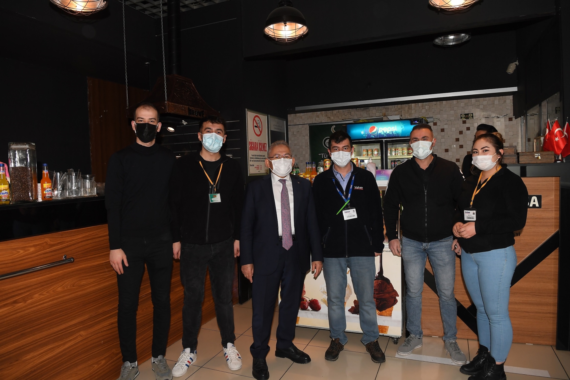 Büyükkılıç, ziyaret kapsamında kafede oturan gençlerle bir araya gelmeye özen