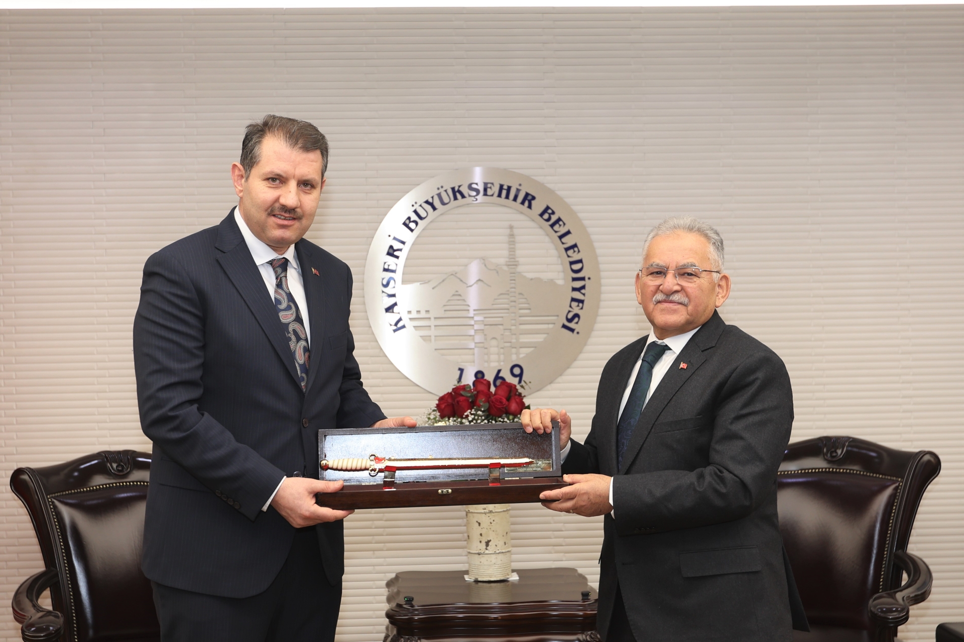 Kayseri Büyükşehir Belediye Başkanı Dr. Memduh Büyükkılıç, bir dizi programa katılmak üzere Kayseri’ye gelen Milli Savunma Bakan Yardımcısı Salih Ayhan ve beraberindeki heyeti, makamında ağırladı.