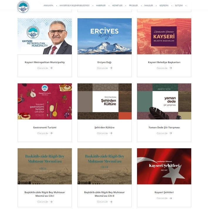 Büyükşehir Belediyesi, zengin bir tarih, kültür ve medeniyete sahip Kayseri’nin özelliklerini konu alan kırk kitapta, edebiyattan sanata, bilinen kişilerden gastronomiye, tarihten medeniyete kadar hemen her konuda vatandaşları aydınlatıyor. Bu kapsamda son 3 yılda kitap koleksiyonuna eklenen kitaplar arasında; ‘Dün Bugünden Daha Yakın, Kayseri Büyükşehir Belediyesi 6. Hikaye Yarışması, Kayseri Tarihi Araştırmaları cilt 1, Kayseri Tarihi Araştırmaları cilt 2, Muhsin İlyas Subaşı Bütün Şiirleri, Sebzecilik ve Doğal Üretim, Kayseri Büyükşehir Belediyesi 4. Şiir Yarışması (Ahmet Remzi Akyürek), Mimar Sinan Müzesi ve Mimarlık Merkezi Ulusal Mimari Proje Yarışması Kitabı, Kayseri’de ve Kayseri Arkeoloji Müzesindeki Hitit Dönemine Ait Eserler, Kayseri Büyükşehir Belediyesi 5. Hikaye Yarışması, Dr. İsmail Gökşen’in Düz Dokumalar Kataloğu, Kayseri Eğitim Tarihi Araştırmaları (Eskiçağdan Osmanlı Devletinin Sonlarına Kadar), Develi-Aşık Seyrani Türk Kültürü Kongresi Sempozyumu 1. Cilt, Develi-Aşık Seyrani Türk Kültürü Kongresi Sempozyumu 2. Cilt, Develi-Aşık Seyrani Türk Kültürü Kongresi Sempozyumu 3. Cilt, Kayseri Uçak Fabrikası (1926-1960), Seyrani’nin Düşünce Dünyası, Kadı Burhaneddin Şiir Yarışması (Kayseri Büyükşehir Belediyesi 3. Şiir Yarışması), Pandemi ile Yaşam (7. Ulusal Fotoğraf Yarışması), Kayseri’de Pastırmacılık, Osmanlıdan Günümüze Koramaz Vadisi Tarihi, Kayseri Büyükşehir Belediyesi 4. Hikaye Yarışması, Erciyes Dağı, Şehirden Kültüre, Sabit Özdemir Özenç Hayatı ve Eserleri, Kayseri Yer altı Yapıları Envanteri 5. Ara Rapor, Kayseri Gastronomi Turizmi Çalıştayı, Başkatipzade Ragıp Bey Muhtasar Mecmuası 1. Cilt, Başkatipzade Ragıp Bey Muhtasar Mecmuası 2. Cilt, Yaman Dede Şiir Yarışması (Kayseri Büyükşehir Belediyesi 2. Şiir Yarışması), Koramaz Vadisi (Resimli), Kapadokya Krallığı ve Roma Bizans Dönemi, Kuruluşundan Günümüze Kayseri Belediye Başkanları, Geçmişten Geleceğe Kayseri Mutfağı, Kayseri’den Kopan Türkü Ahmet Gazi Ayhan, Hasan Nail Canat Hikaye Yarışması (3. Hikaye Yarışması), Kayseri Türküleri ve Oyun Havaları, Cumhuriyet Dönemi Kayseri Şehitleri (1923-2017), Kayseri Sağlık Turizmi Çalıştayı, Kayseri’de Biran (6. Ulusal Fotoğraf Yarışması), Aşık Seyrani Şiir Yarışması (Kayseri Büyükşehir Belediyesi 1. Şiir Yarışması) ve Şeyh İbrahim Tennuri ve Gülşeni Niyaz’ gibi bilgi ve kültür hazineleri yer aldı.