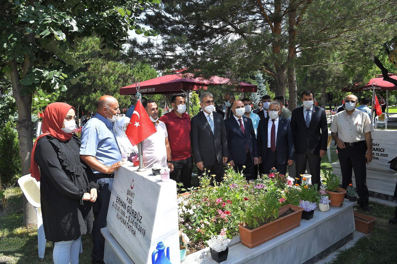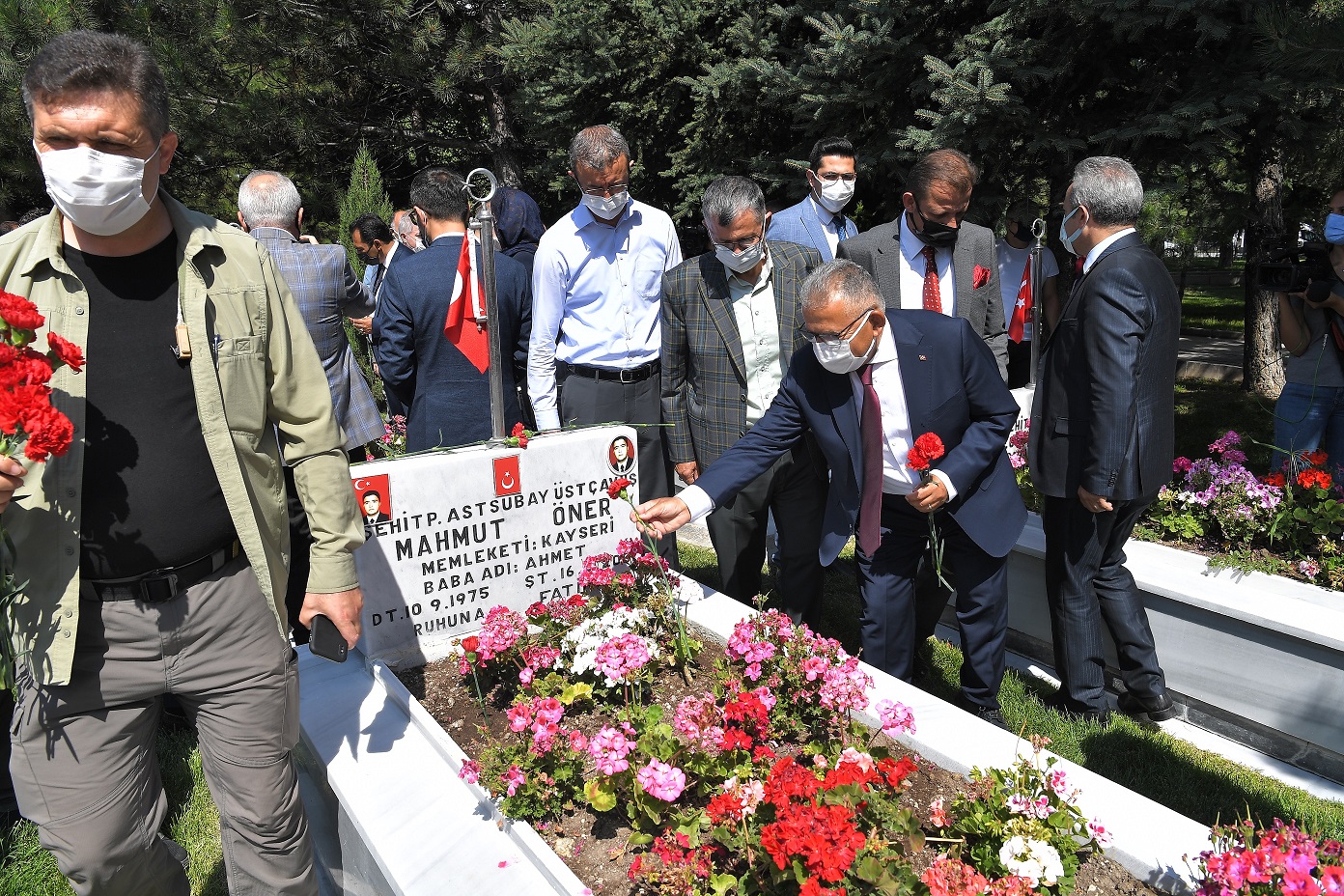 Kayseri Büyükşehir Belediye Başkanı Dr. Memduh Büyükkılıç, protokolle birlikte 15 Temmuz Demokrasi ve Milli Birlik Günü kapsamında Kartal Şehitliği’ni ve Polis Şehitliği’ni ziyaret ederek, tüm şehitlere dualar okuyup, mezarlarına karanfil bıraktı.