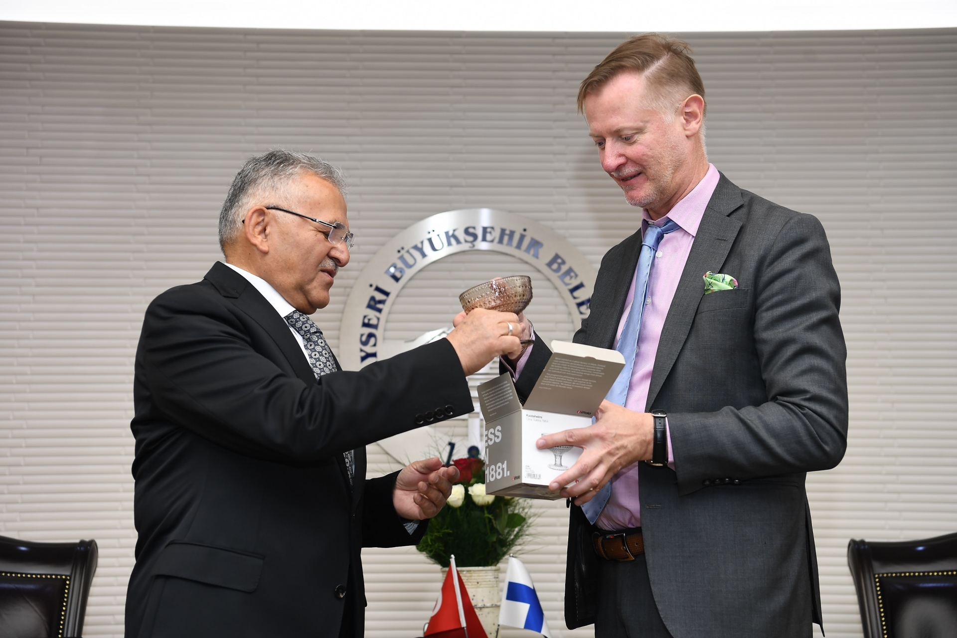 hediye olarak takdim etti. Büyükelçi Mäki de Başkan Büyükkılıç’a, cam sanatında