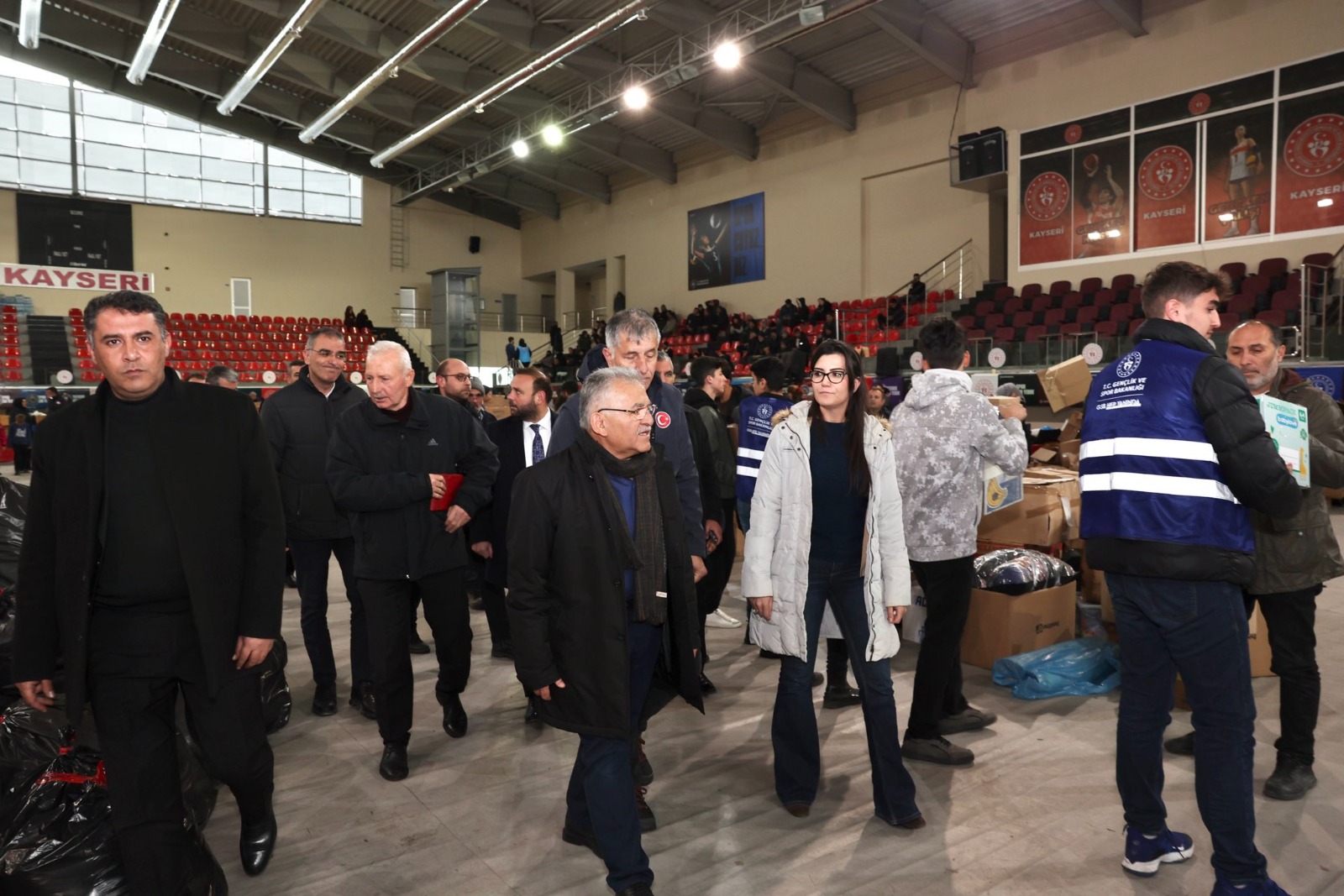 Kayseri Büyükşehir Belediye Başkanı Dr. Memduh Büyükkılıç, bölgenin en büyük Deprem Lojistik Merkezi’nde yürütülen çalışmaları inceledi ve merkezdeki depremzede vatandaşlarla yakından ilgilendi.