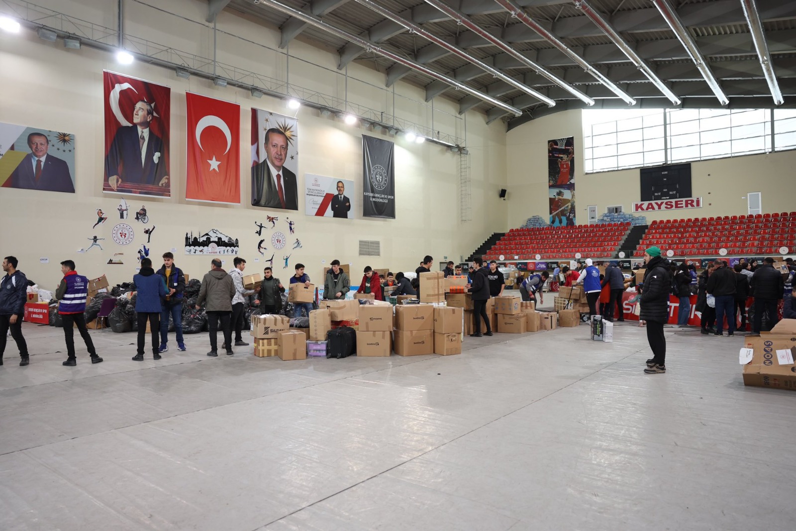 Türkiye’yi sarsan, merkez üssü Kahramanmaraş olan iki deprem sonrası tüm Türkiye seferber olurken, Kayseri’de de vatandaşlar ile kamu kurum ve kuruluşları el birliği ile yaraları sarmak üzere yardım seferberliği tüm hızıyla sürüyor. Kentte ve deprem bölgesinde Kayseri Büyükşehir Belediyesi öncülüğünde 16 ilçe belediyesinin el ele vererek yaraları sarma çalışmalarını koordine eden Büyükşehir Belediye Başkanı Dr. Memduh Büyükkılıç, Gençlik ve Spor Bakanlığı tarafından oluşturulan bölgenin en büyük Deprem Lojistik Merkezi’nde yürütülen çalışmaları inceledi.