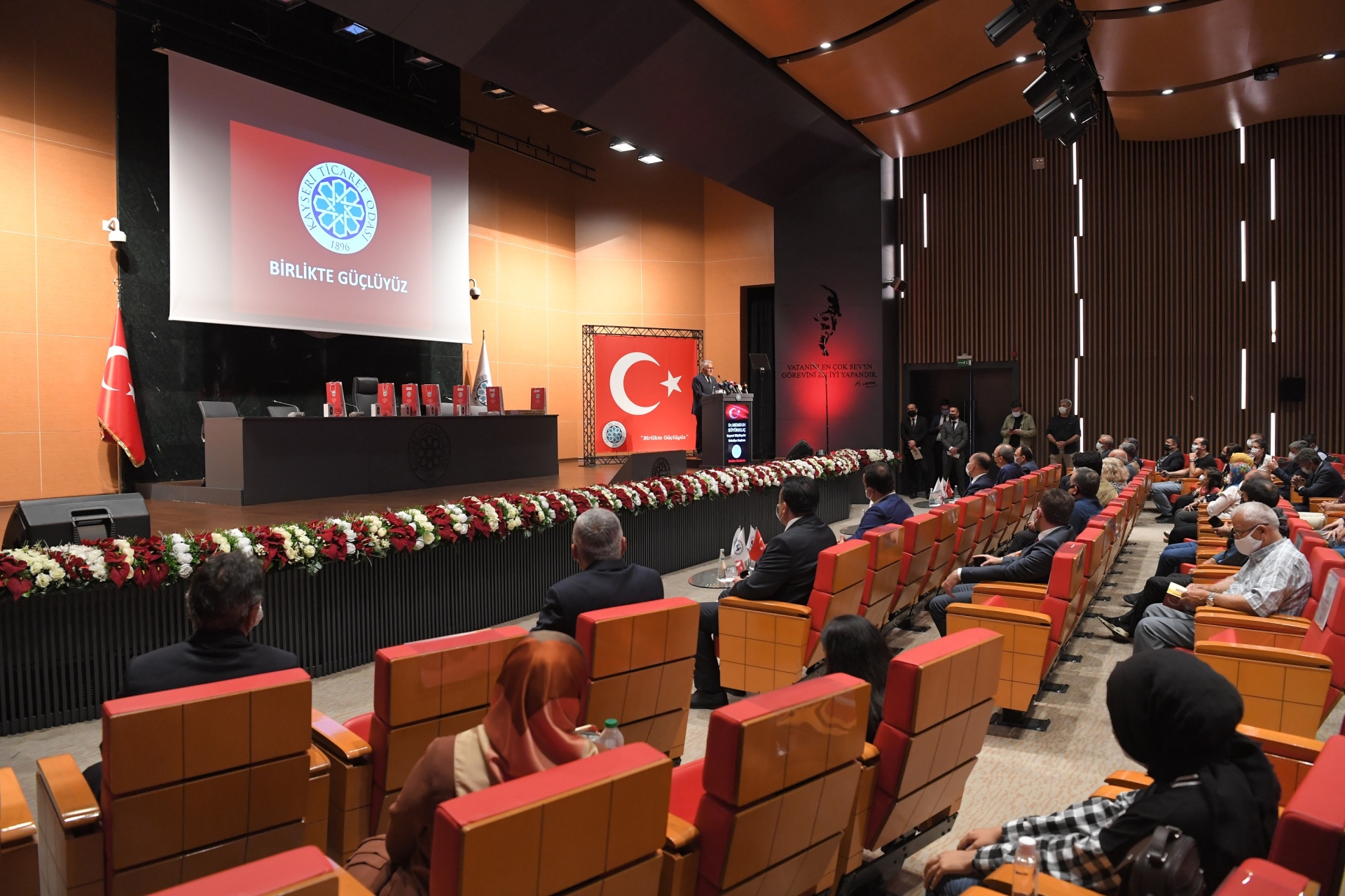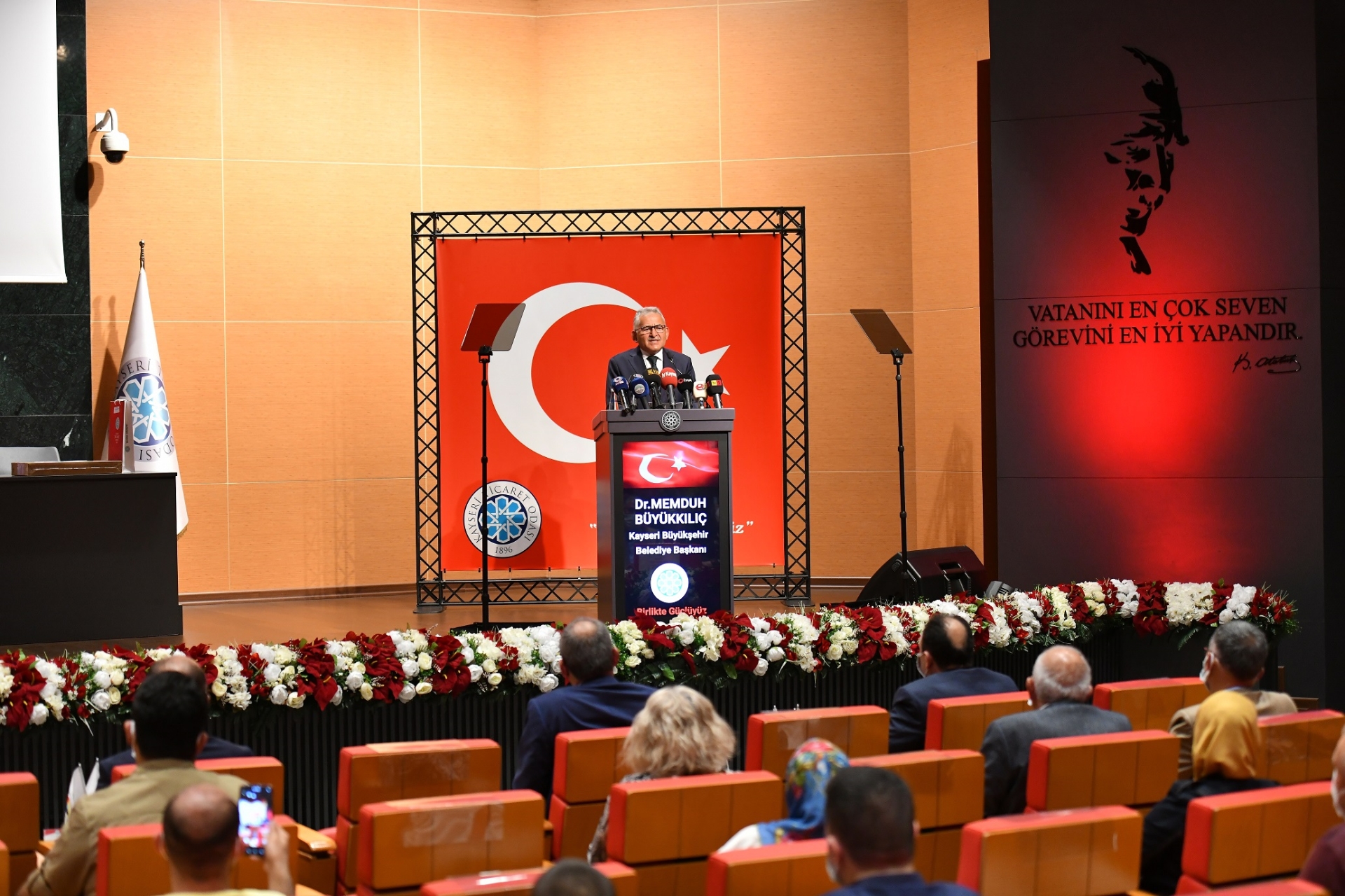 Kayseri Ticaret Odası’nda gerçekleşen ve Başkan Büyükkılıç’ın yanı sıra Vali Şehmus Günaydın, İl Milli Eğitim Müdürü Bilal Yılmaz Çandıroğlu, KTO Başkanı Ömer Gülsoy, KTO Meclis Başkanı Cengiz Hakan Arslan ve davetlilerin katıldığı program saygı duruşu ve İstiklal Marşı’nın okunmasıyla başladı.