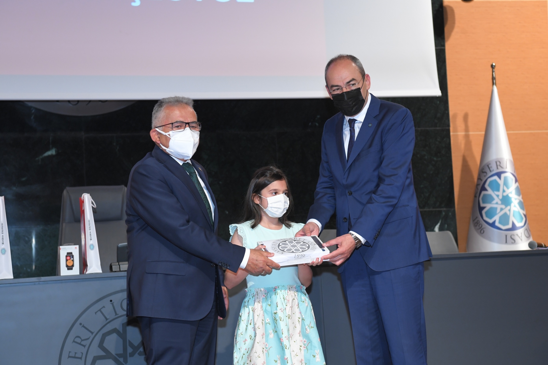 Kayseri Büyükşehir Belediye Başkanı Dr. Memduh Büyükkılıç, Kayseri Ticaret Odası (KTO) ve İl Milli Eğitim Müdürlüğü işbirliği ile düzenlenen İstiklal Marşı’nı Güzel Okuma Yarışması ödül törenine katılarak, İstiklal Marşı’nı coşku ve inançla okuyarak herkesin dikkatini çeken ve jüri özel ödülüne layık görülen Yeşilhisarlı İlkokulu 1. sınıf öğrencisi 7 yaşındaki Ayşe Ebrar Yamuk’a ödül verdi.