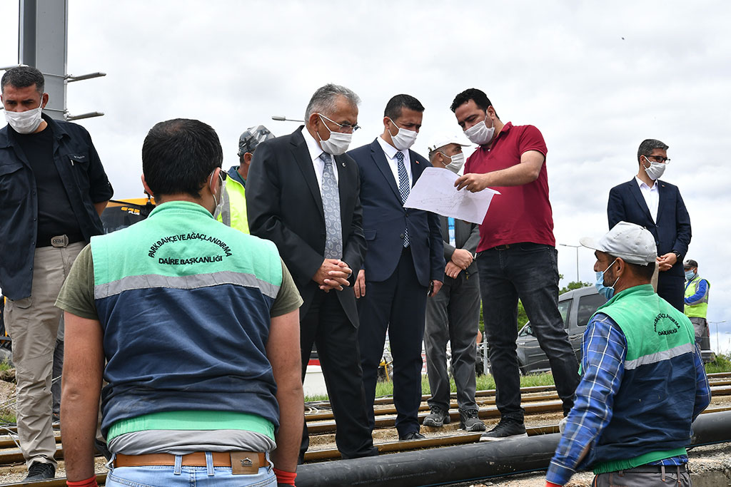 Kayseri Büyükşehir Belediye Başkanı Dr. Memduh Büyükkılıç, dört gün sürecek kısıtlamanın ilk gününde Gesi Kavşağı’na neşter vurdu. Gesi Kavşağı’nın çok daha fonksiyonel hale gelmesini ve trafik akışının çok daha seri olmasını isteyen Büyükkılıç, sinyalizasyonu da kapsayan çalışmaları yerinde takip etti. Kayseri Büyükşehir Belediyesi, Covid-19 salgını süresince ulaşım konusunda gerek altyapı ve yol gerekse sinyalizasyon çalışmalarını hızlandırdı. Bu kapsamda Gesi Kavşağı’nda yapılan ışık düzenlemesini inceleyen Büyükşehir Belediye Başkanı Dr. Memduh Büyükkılıç, “Bir bakıma doğu kapısı olarak nitelendirilen Gesi Kavşağı’nda trafik ışıkları düzenlemesini ve kavşak düzenlemesini yeniden gözden geçirmek suretiyle sıkıntıyı en aza indirgeyeceğiz. Burada vatandaşlarımızın kavşakta gereksiz yere beklemeden daha süratli olarak kavşağı boşaltacağı bir anlayışta çalışma yapılıyor. Buradaki kavşakta yaklaşık yüzde 60-70 oranında araçların Gesi tarafına gittiğini gözlemliyoruz. Öyle olunca burada gereksiz yere ışıkta bekletmeden yan yol ile vatandaşlarımız kavşakta beklemeden geçerlerse yığılma da önlenmiş olur. Bu çalışmayı sokağa çıkmadaki sınırlamaya, bayram vesilesiyle olan bu boşluğa denk getirdik. Bir bakıma fırsatçılık yapmak suretiyle alt yapıdaki düzenlemeyle asfalt çalışmasıyla, gerekse ışıkların düzenlemesiyle, inşallah kısa sürede bitirmek suretiyle vatandaşlarımızı bayram sonrası rahatlıkla bu kavşaktan istifade edecek konuma getireceğiz. Şehrimize hayırlı olsun diyoruz. Kayserili hemşehrilerimiz siz evde kalın yeter ki, biz size daha konforlu daha yaşanabilir bir şehir bırakmak için çalışmaya devam ediyoruz. Bu vesileyle bayramınızı bir kez daha tebrik ediyorum. Hayırlı arefeler, hayırlı bayramlar diliyorum” şeklinde konuştu.