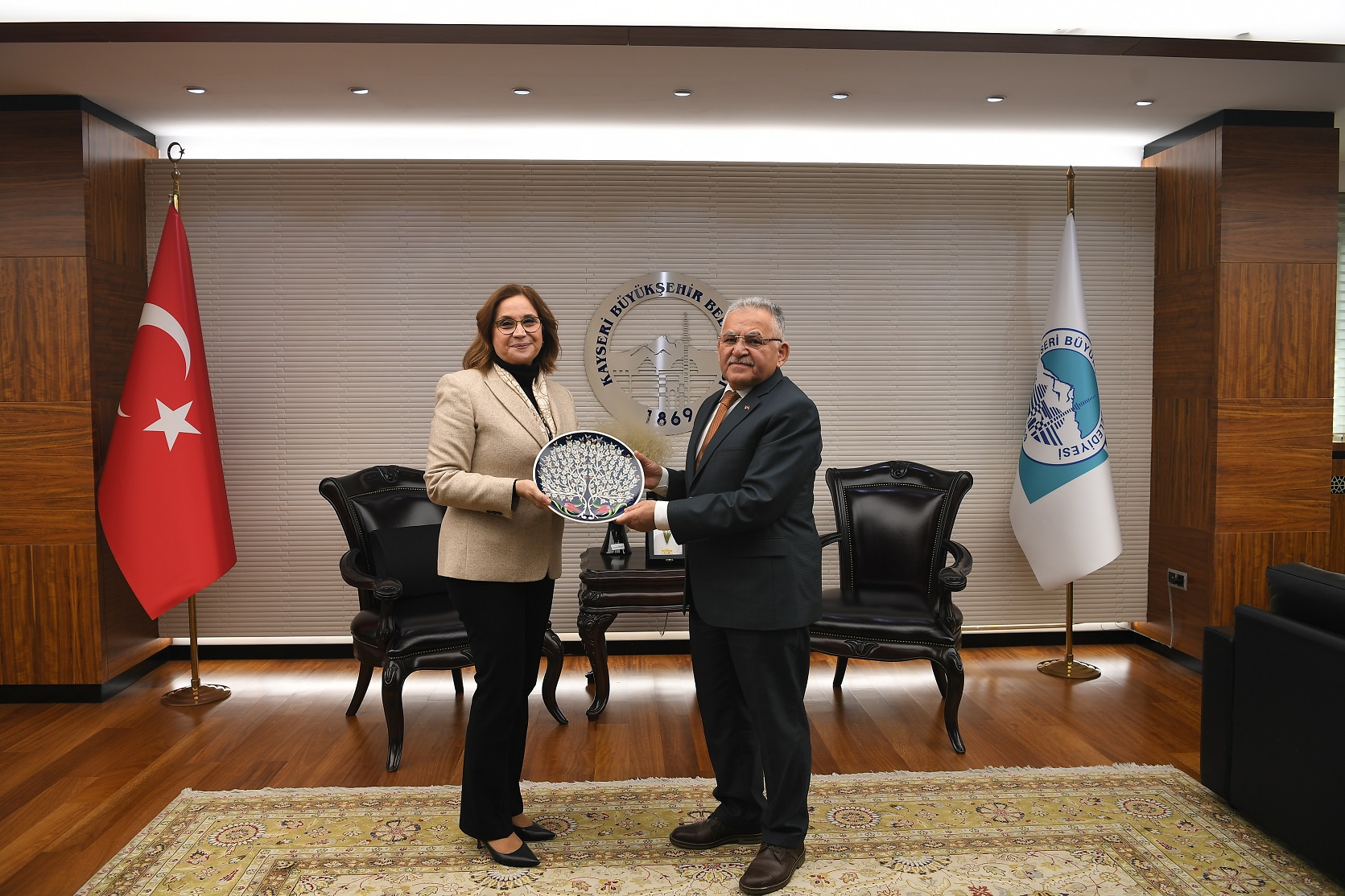 Türkiye Kadın Girişimciler Derneği Yönetim Kurulu Başkanı Emine Erdem (KAGİDER) ile 15 kişilik heyeti, Büyükşehir Belediye Başkanı Dr. Memduh Büyükkılıç’a nezaket ziyaretinde bulundu.