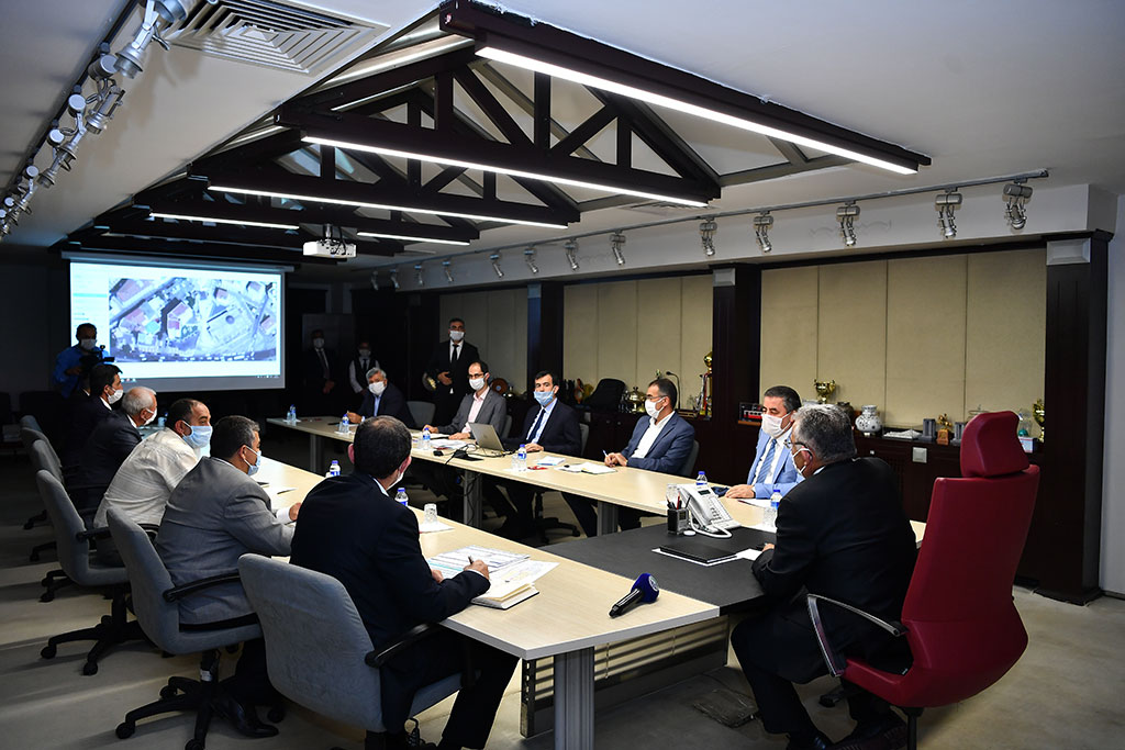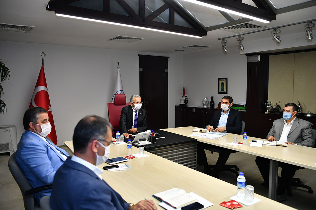 Kayseri Büyükşehir Belediye Başkanı Dr. Memduh Büyükkılıç, Büyükşehir Belediyesi bünyesindeki daire başkanlıkları ve alt yapı kuruluşu olan KASKİ’nin 2020 yılında yapacakları yatırımlara ilişkin toplantılarını sürdürüyor. Başkan Dr. Memduh Büyükkılıç, toplantıda “Hiçbir mazerete sığınmadan önümüzdeki dönemde Kayseri’mizi daha da yaşanılabilir, konforlu, güvenli ve huzurlu bir şehir olması için çalışmalarımızı sürdürüyoruz” diye konuştu. Toplantıya Başkan Büyükkılıç’ın yanı sıra Büyükşehir Belediyesi Genel Sekreteri, genel sekreter yardımcıları, KASKİ Genel Müdürü ve ilgili daire başkanları katıldı. Yatırımlarla ilgili bir araya geldiklerini ve yapılacak yatırımları detaylarıyla ele aldıklarını ifade eden Başkan Büyükkılıç, Covid-19 salgınında bir süreç yaşandığını ancak bu süreçte, dayanışma içerisinde Kayseri Büyükşehir Belediyesi’nin üzerine düşen bütün görevleri yaptığını söyledi. Başkan Büyükkılıç, “Kayseri Büyükşehir Belediye’mizin 2020 yılında yapılacak olan yatırımlarla ilgili projelerin hazırlıklarını gözden geçiriyor. Uygulama açısından değerlendirmeye çalışıyoruz. Elbette bir korona süreci yaşandı. Hayat devam ediyor. İnsanların bizlerdeki beklentileri devam ediyor. Biz de bu anlayış içerisinde çalışmaları hem hazırlamak, hem de uygulamak açısından gece demeden, gündüz demeden ekibimizle birlikte çalışmalarımızı sürdürüyoruz” dedi. Sokağa çıkma kısıtlamasını fırsat bilerek, yaklaşık on yıldır kullanılan ve yıpranma sürecine giren asfaltlarla ilgili çalışmaları tüm bölgeler de tamamladıklarını dile getirdi. KASKİ’nin de yapılması gereken çalışmaları tamamlandığını belirten Büyükşehir Belediye Başkanı Memduh Büyükkılıç, “Hiçbir mazerete sığınmadan önümüzdeki dönemde Kayseri’mizi daha da yaşanılabilir daha konforlu ve güvenli, huzurlu bir şekilde olması için çalışmalarımızı sürdürdük. Gayretli , çalışkan, deneyimli Kayseri Büyükşehir Belediye’mizin ve KASKİ’miz de çalışan arkadaşlarımıza ve ekiplerimize çok teşekkür ediyorum. İnşallah kazasız belasız hizmetler yaparız. Ramazan Bayramımızı geri de bıraktık. Kurban Bayramına da inşallah sağlıklı ve huzurlu bir şekilde kavuşuruz” dedi. ““MMT” Bu İşin Olmazsa Olmazı” Yeni dönemde Maske,mesafe ve temizliğin çok önemli olduğunu da vurgulayan Başkan Büyükkkılıç,” “MMT” bu işin olmazsa olmazı. Bu süreçte hepimizin uyacağı çalışmalar sürdüreceğiz” diye konuştu.