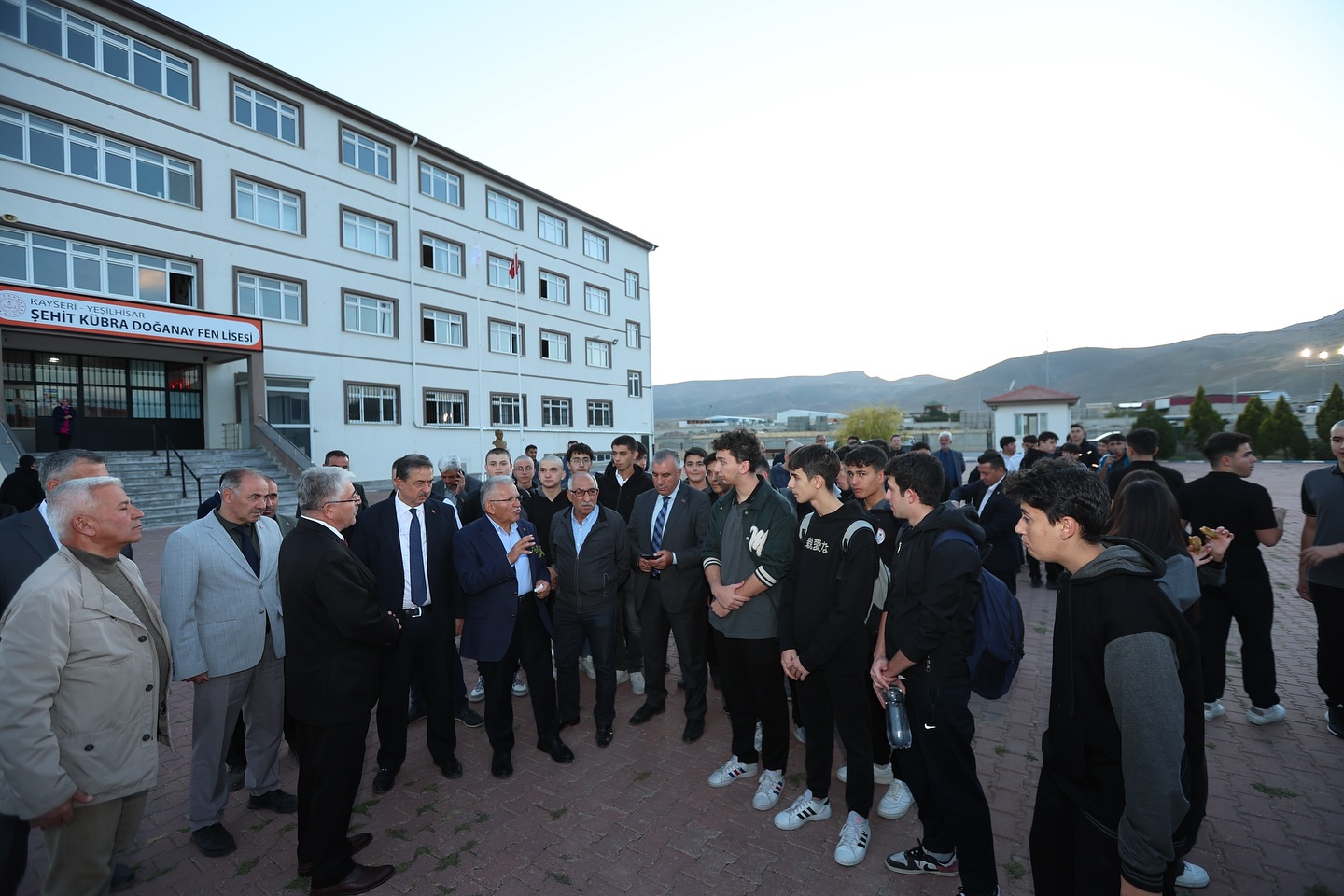 Büyükkılıç, okul ziyaretinde eğitim öğretim faaliyetleri hakkında bilgiler aldı. Gençleri sevdiklerini dile getirerek, nasihatlerde bulunan, kendilerini geliştirmeleri tavsiyesinde bulunarak tecrübelerinden bahseden Başkan Büyükkılıç, gençlerin değerlerine sahip olmasını da talep ederek, aidiyet duygusunun önemine işaret etti. Ayrıca dijital bağımlılığın sakıncalarından da söz eden Büyükkılıç, “Bize düşen hizmet ne ise ne gerekiyorsa yaparız. Bundan müsterih olun. Ülkemizin geleceğisiniz, insanlığın geleceğisiniz. Yeşilhisar ilçemizin güzide okulundan bu kadar başarının çıkması beni gururlandırdı” diyerek Kayseri Büyükşehir Belediyesi’nin sağladığı hizmetlerden ve imkânlardan bahsetti, öğrencileri şehri ve Büyükşehri keşfetmeye çağırdı.