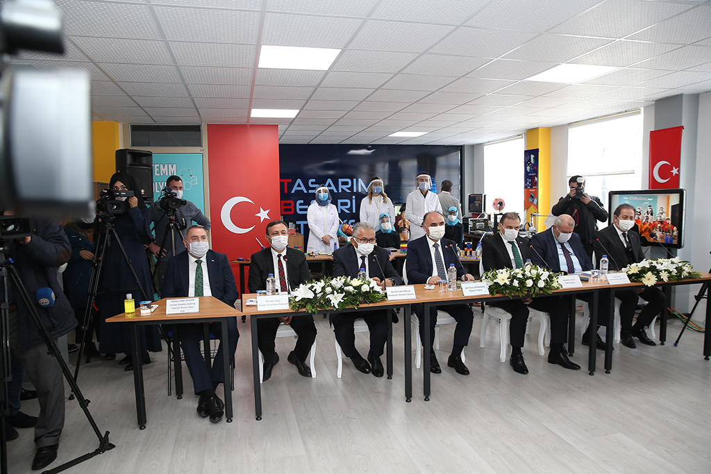 Nurettin Öztürk İmam Hatip Ortaokulu’nda düzenlenen Kayseri İl Milli Eğitim Müdürlüğü ve Erciyes Anadolu Holding iş birliğinde hazırlanan 79 adet Tasarım Beceri Atölyesi’nin açılış programına Milli Eğitim Bakanı Ziya Selçuk video konferans yöntemiyle katıldı. Programa Büyükşehir Belediye Başkanı Dr. Memduh Büyükkılıç’ın yanı sıra, Kayseri Valisi Şehmus Günaydın, ERÜ Rektörü Prof. Dr. Mustafa Çalış, İl Milli Eğitim Müdürü Celalettin Ekinci, TMSF Başkanı Muhiddin Gülal, Erciyes Anadolu Holding Yönetim Kurulu Başkanı İsmail Güler ve Erciyes Anadolu Holding CEO’su Alparslan Baki Ertekin katıldı. Hayırsever belediyecilik anlayışı ile başarılı çalışmalara imza atan Büyükşehir Belediye Başkanı Dr. Memduh Büyükkılıç, törende yaptığı konuşmada, “Kayseri malumunuz makarr-ı evliya, makarr-ı ulema olarak bilinen alimler, veliler şehri, huzur şehri, güvenli bir limandır. Hayırseverliği ile de meşhur olan Kayserimiz dayanışmanın en güzel örneklerini sergileyerek, sayın valimiz ve tüm teşkilatlarımızla bu şehri daha iyi noktalara taşımak için gayretler göstermektedir. Erciyes Üniversitesi gibi bir değerimizi buradan kutlayarak, her zaman gururumuz olduğunu paylaşıyorum” dedi. “GENÇLERİMİZİ ÖNEMSİYOR VE HİÇBİR ZAMAN YALNIZ BIRAKMIYORUZ” Kayseri’de alt yapı oluşturma anlayışı içerisinde bu tür çalışmalara hem destek verdiklerini, hem de gençlere sahip çıktıklarını vurgulayan Başkan Büyükkılıç, konuşmasını şöyle sürdürdü: “KAYMEK üzerinden meslek edindirme kurslarımızı şu anda uzaktan eğitim anlayışı ile sürdürüyoruz. Gençlerimizi önemsiyor ve hiçbir zaman yalnız bırakmıyoruz. Daha dün attığımız iki ayrı temel ile de yine Kayserimize ve gençlerimiz ile engelli yavrularımıza yönelik kazanımlar sağlamak amacıyla fiziken ve bilimsel olarak daha verimli hale gelmeleri için çalışmalar yaptığımızı paylaşmak istiyorum. Erciyes Anadolu Holding’e de buradan teşekkür ediyorum. Sayın bakanım sizler Kayseri’ye teşrif ettiğinizde, Kayseri Büyükşehir Belediyesi olarak sizlere 100 tane söz vermiştik. Milli Eğitim Müdürlüğümüz ile işbirliği içerisinde yaptığımız ve yapacağımız çalışmalar ile okulların listesini verdikçe bizler de bu verdiğimiz sözü yerine getireceğimizi vurguluyoruz.” Kayseri Valisi Şehmus Günaydın ise bu projenin ülkemizin yetişmiş insan ihtiyacını karşılayacağını, atölyelerin çocuklarda olan beceriyi ortaya çıkaracağını ve geliştireceğini inandığını söyledi. TMSF Başkanı Muhiddin Gülal da “Gelecekte güçlü toplum, güçlü Türkiye hedeflerine ulaşabilmek için çocuklarımızın gerek zihni, gerek teknik donanımızı artırmak durumundayız. Bu bilinç ve vizyonla oluşturulan tasarım beceri atölyeleri projesinde değerli paydaşlarımızla katkı sağlamaktan son derece mutlu olduğumuzu ifade etmek istiyorum” dedi. BAKAN SELÇUK: “KAYSERİ İLE MUTLU OLACAĞIZ VE GÜZELLEŞECEĞİZ” Son olarak konuşan Milli Eğitim Bakanı Ziya Selçuk tasarım beceri atölyelerini önemsediğini belirterek, “Ben sadece aracıyım, çocukların hatırı için bazı çabalar sergileyen birisiyim. Bu anlamda tasarım beceri atölyelerini çok önemsediğimi tekrar ifade etmek isterim. Eğitim sistemleri ikiye ayrılır, bazıları bilmek üzerine, bazıları yapabilmek üzerine çalışır. Sadece bilmek üzerine, teori olursa çocuklar hafızalarını geliştirirler ama hayatlarını geliştiremezler. Soru çözerler ama sorun çözemezler, o yüzden yapabilmek çok önemlidir. Yapabilmenin de ortamını sağlamak tasarım beceri atölyeleri ile doğrudan ilgilidir. Sayın valimiz ve başkanımızın da ifade ettiği gibi 100’er tane tasarım beceri atölyeleri gelecek. Biz Kayseri ile mutlu olacağız ve güzelleşeceğiz. Okullarımız gerçekten daha yüksek bir anlama kavuşacak” ifadelerini kullandı. Bazı okullardan video konferans ile katılan minik öğrenciler de Bakan Selçuk’a teşekkürlerini ilettiler. Konuşmaların ardından 79 adet Tasarım Beceri Atölyesi’nin açılış kurdelesi kesildi. Program sonunda günün anısına okul bahçesine fidan dikimi yapıldı.