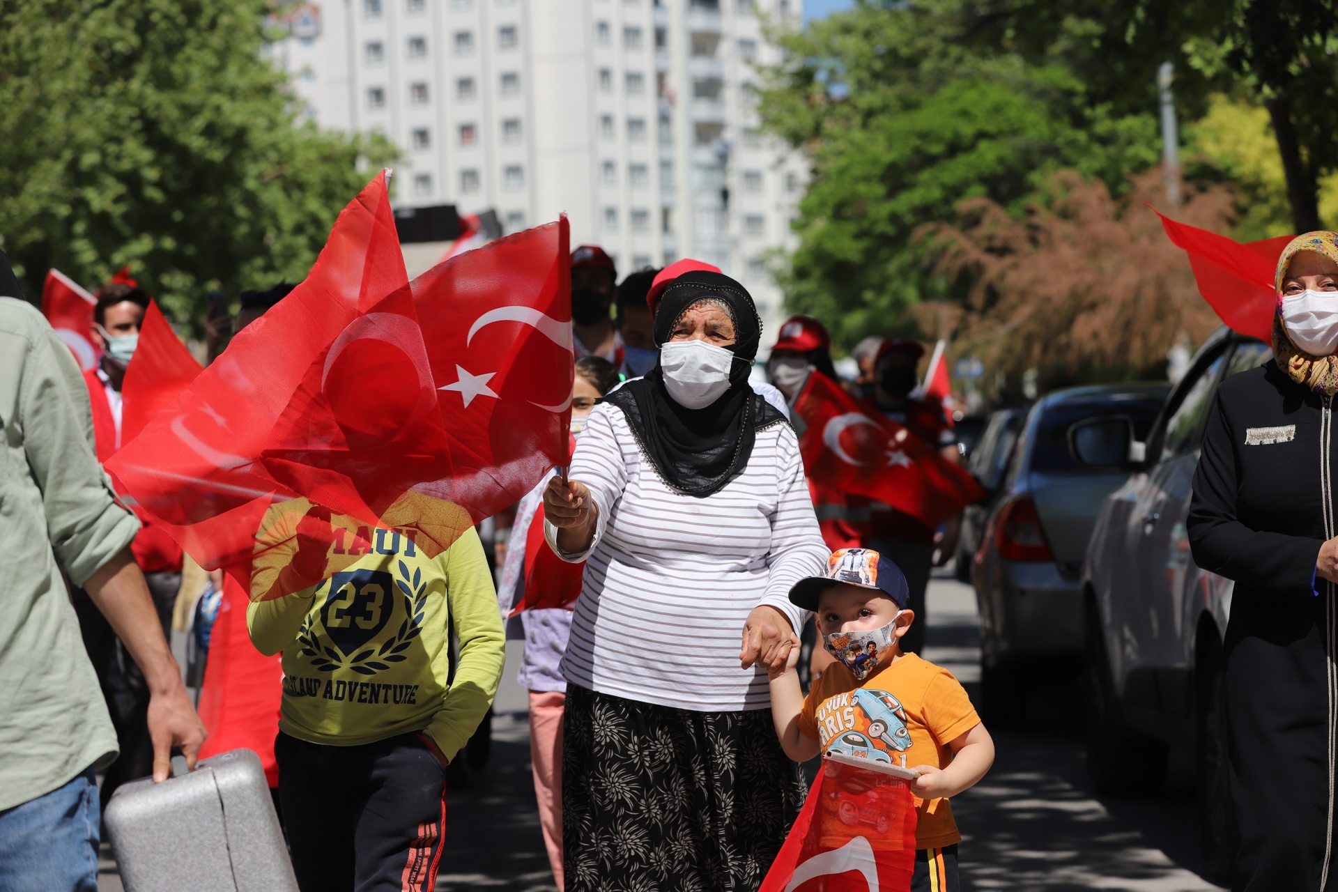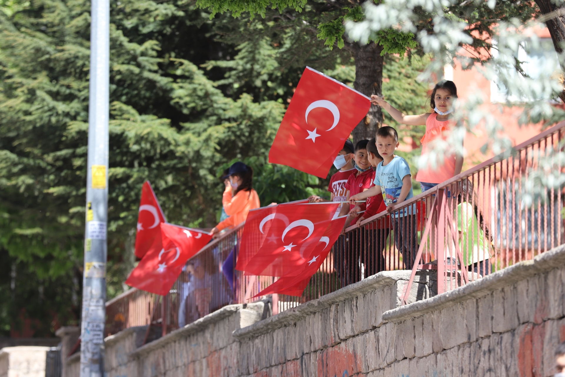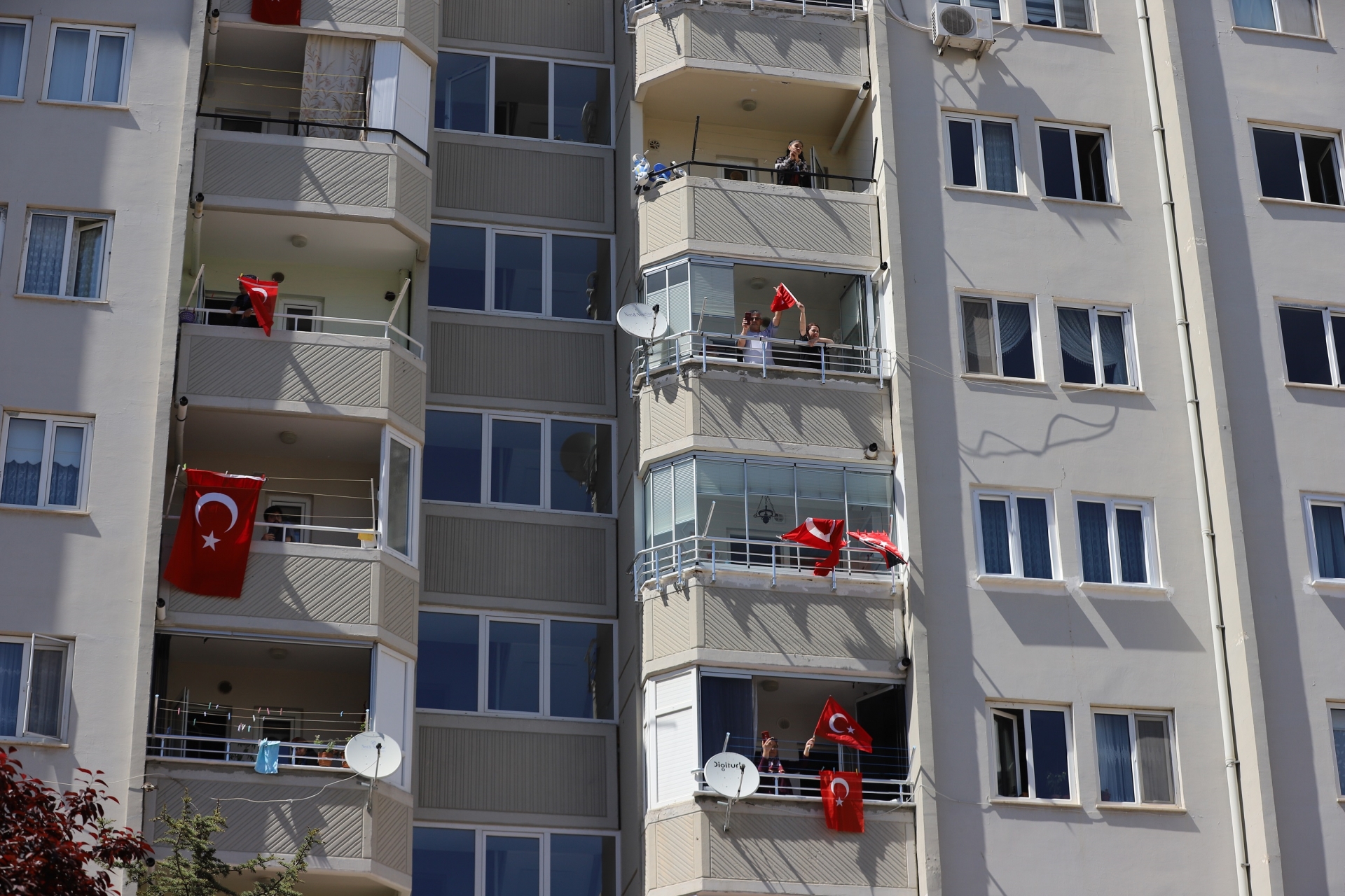 kutlamalarda, evlerinde kalan vatandaşlar, gençler ve çocuklar da evlerinin