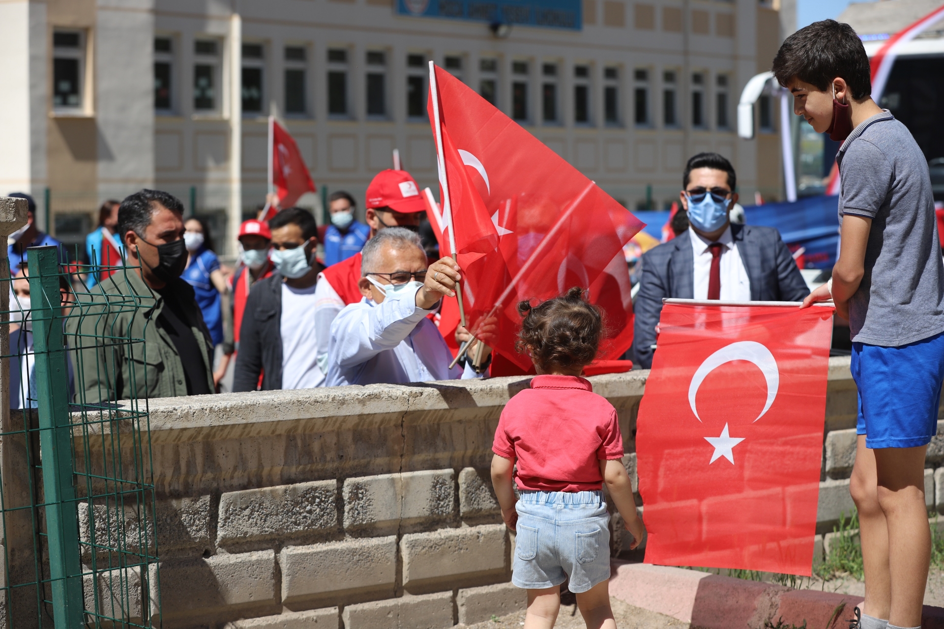 Büyükkılıç, çocuklara Türk Bayrağı dağıttı.