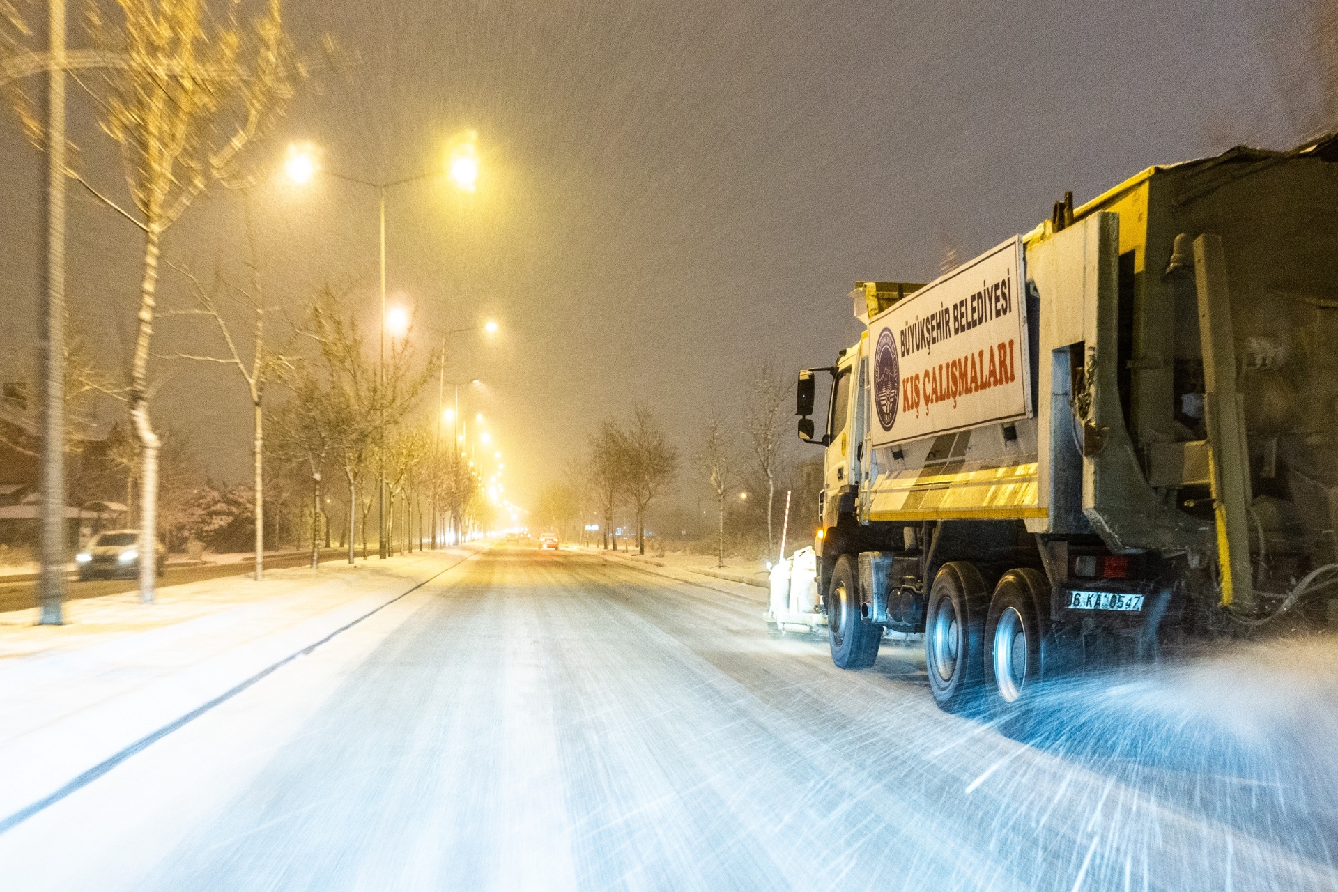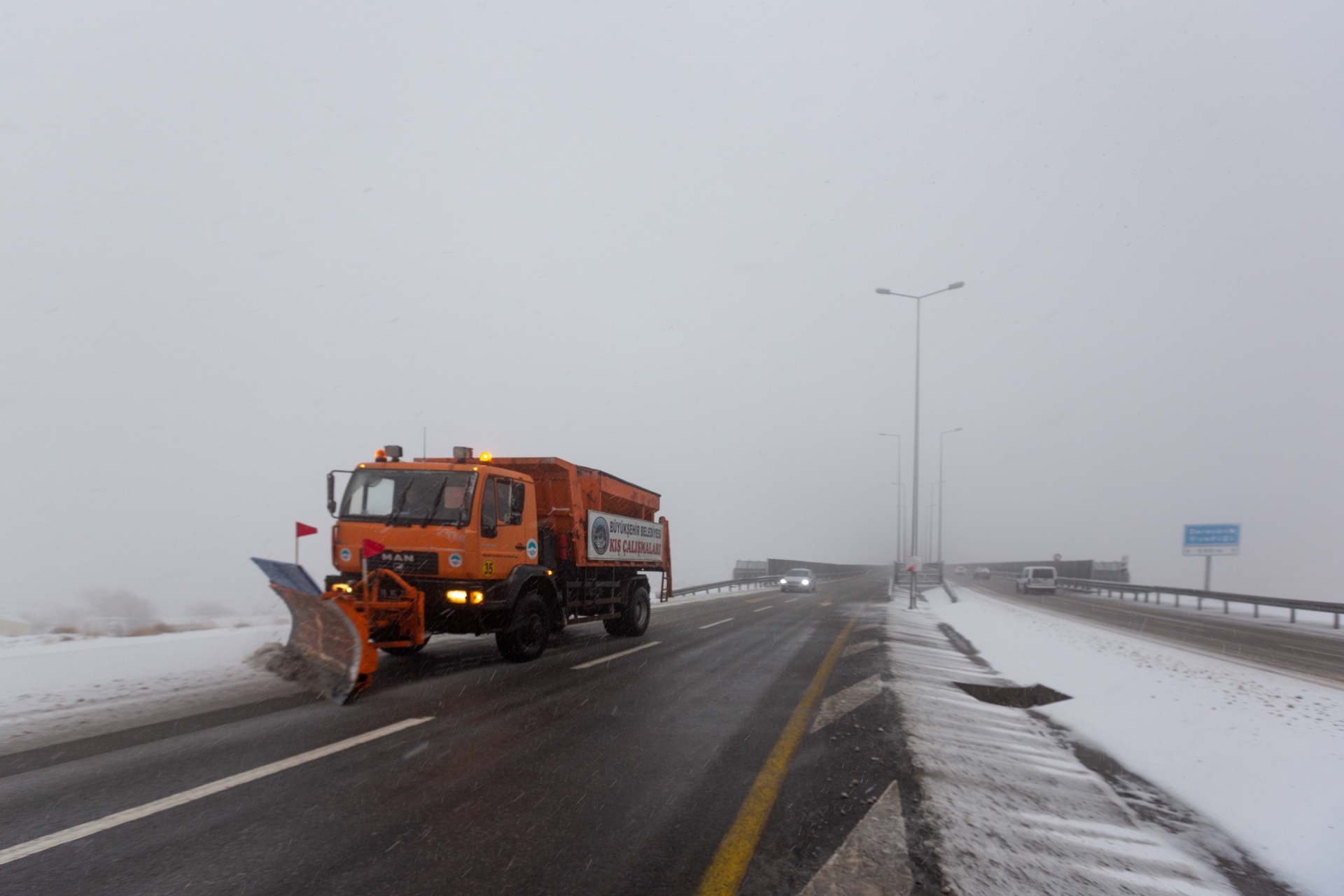 olarak çalışan Büyükşehir Belediyesi’nin karla mücadele ekipleri, kar yağışının