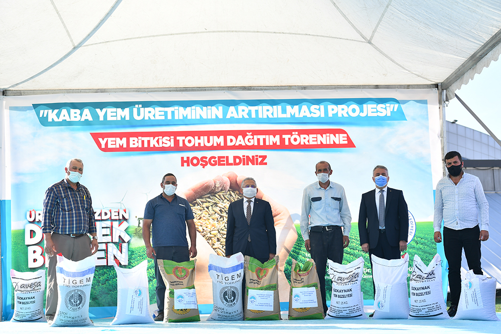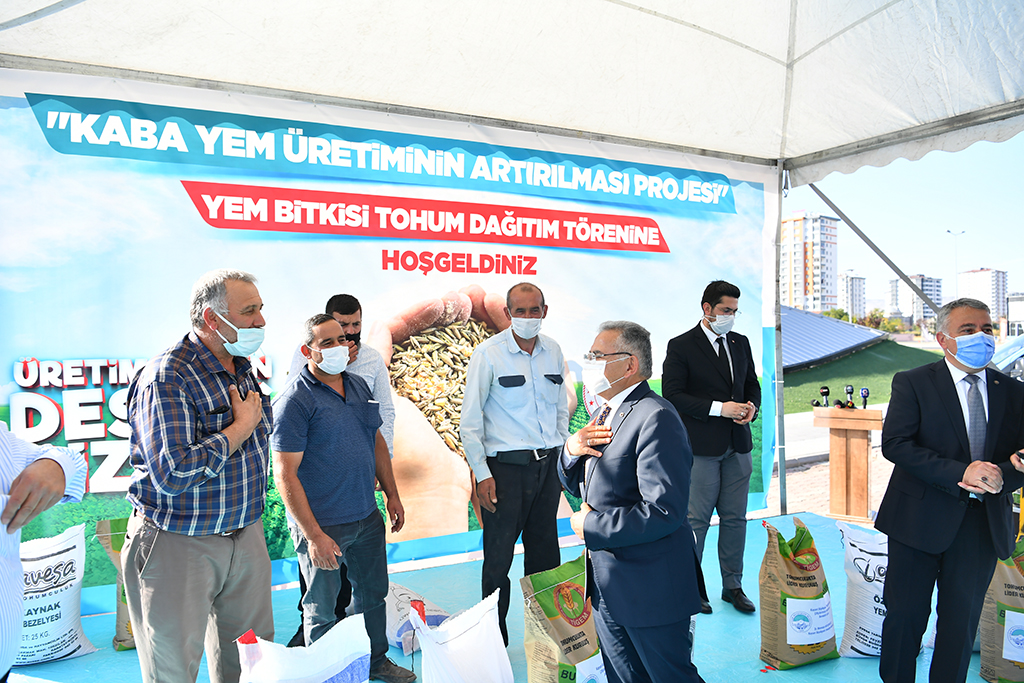 Kayseri Büyükşehir Belediyesi tarafından hazırlanan Yem Bitkileri Üretimi Artırma Projesi kapsamında il genelindeki üreticilere toplam 414 ton yem bitkisi tohumu dağıtıldı. Başkan Dr. Memduh Büyükkılıç, Kayseri’nin tarım ve hayvancılıkta daha fazla söz sahibi olabilmesi adına üreticiye destek vermeye devam edeceklerini açıkladı. Kayseri Büyükşehir Belediyesi’nce hazırlanan ve Tarım ve Orman İl Müdürlüğü’nce desteklenen Yem Bitkileri Üretimi Artırma Projesi kapsamında Yem Bitkisi Tohum Dağıtım Töreni düzenlendi. Kadir Has Kongre ve Kültür Merkezi’nin açık alanında düzenlenen törene düzenlenen Başkan Büyükkılıç’ın yanı sıra Büyükşehir Belediyesi Genel Sekreteri Hüseyin Beyhan, İl tarım ve Orman Müdürü Mustafa Şahin, Kayseri Ziraat Odaları İl Koordinasyon Kurulu Başkanı Abdulkadir Güneş, ilçe ziraat odalarının başkanları, sektör temsilcileri ve çiftçiler katıldı. Başkan Büyükkılıç, törende yaptığı konuşmada, Kayseri’de tarım ve hayvancılığa önemli katkı sağlayacak projenin Büyükşehir Belediyesi tarafından hayata geçirilmesinin keyfini yaşadığını söyledi. Törene İncesu, Yeşilhisar ve Yahyalı ziyaretlerinin devamında katıldığını hatırlatan ve bu ilçelerde de tarım ve hayvancılığın gelişimine ilişkin üreticinin memnuniyetine bizzat şahit olduğunu anlatan Başkan Büyükkılıç, birlik, beraberlik ve dayanışmanın en güzel örneklerinden birini daha bu projeyle yaşadıklarını ifade etti. Yerel yönetimler olarak, “Üretime ve üreticiye her daim destek” mantığıyla hareket ettiklerini dile getiren Başkan Büyükkılıç, “Ot olmazsa et olmaz” diyerek, şu bilgileri verdi: “Türkiye’deki çilek fidesinin yüzde 56’sı Kayserimizde yetişiyor. Bu konuda teşvik ve destek çalışmalarımız var. Kabak çekirdeği konusunda yüzde 40’lık üretimimiz söz konusu. Paketleme konusunda çalışmalarımız var. Çerezlik ay çekirdeğinde Türkiye’de ikinci sıradayız. Kalitesini artırmak için çalışmalar yapıyoruz. Bütün bunların yanında bugün burada Yem Bitkileri Üretimi Artırma Projemizi konuşuyoruz. Şunu söylemek istiyorum ki, ilimizde yaklaşık 300 bin büyükbaş ve 650 bin küçükbaş hayvan varlığı bulunuyor. Hayvanların 740 bin ton kaliteli kaba yeme ihtiyaçları var. Ancak kentimizde kaba yem üretimimiz 371 bin ton civarında. Bu nedenlerle hem ilimiz kaba yem açığının bir kısmının karşılanması hem de çiftçilerimizi desteklemek amacı ile yüzde 75 bütçesi belediyemizden ve yüzde 25 bütçesi çiftçilerimiz tarafından sağlanmak üzere; 118 ton yem bezelyesi, 171 ton macarfiğ, 125 bin kılçıksız buğday olmak üzere toplam 414 ton yem bitkisi tohumluğu dağıtıyoruz. Bu proje ile bin 663 çiftçimiz 31 bin 100 dekar alanda ekim yapacak. Toplam proje bedelimiz 2 Milyon 682 bin 100 Türk Lirasıdır.” Tarım ve hayvancılığın hem şehre hem de ülkeye önemli bir katma değer sağladığını kaydeden Başkan Büyükkılıç, üreticilere de Maske-Mesafe ve Temizlik kurallarına uymalarını hatırlatarak, projenin hayırlı olması dileğinde bulundu. İl Tarım ve Orman Müdürü Mustafa Şahin de, Büyükşehir Belediyesi’nin projesine müdürlük olarak destek vermelerinden mutlu olduklarını belirterek, projeden dolayı Başkan Büyükkılıç’a teşekkür etti. Şahin, proje kapsamında dağıtılan yem bitkileri tohumundan elde edilecek yemin Kayseri’de 15 bin baş hayvanın 1 yıllık kaba yem ihtiyacını karşılayacağını belirtti. Kayseri Ziraat Odaları İl Koordinasyon Kurulu Başkanı Abdulkadir Güneş ise, Büyükşehir Belediyesi’nin her zaman tarım ve hayvancılığı desteklediğini belirterek, bunlara örnek olarak tarım alet ve ekipmanlarını, hayvan içme suyu tesislerini ve arazi yollarını gösterdi ve Başkan Büyükkılıç’a teşekkür etti. Konuşmaların ardından Başkan Büyükkılıç ve beraberindekiler tarafından çiftçilere yem bitkisi tohumları teslim edildi.