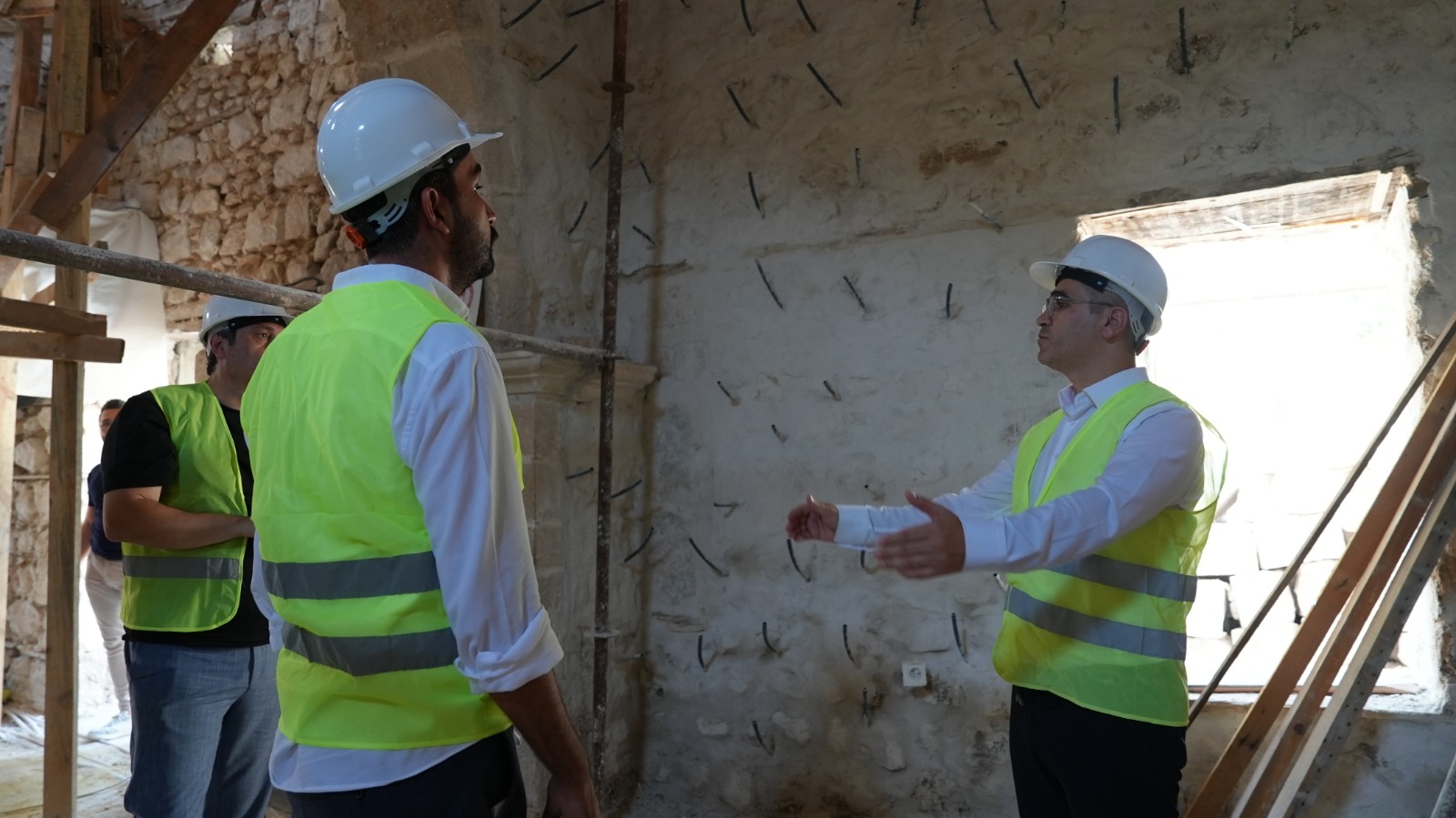 Kayseri Büyükşehir Belediyesi Genel Sekreter Yardımcısı Ufuk Sekmen ve Kent Tarihi ve Tanıtımı Daire Başkanı Gürcan Senem, Kahramanmaraş ili, Dulkadiroğlu ilçesi, Ekmekçi Mahallesi’nde bulunan ve korunması gerekli taşınmaz kültür varlığı olarak tescilli tarihi camide hummalı şekilde süren çalışmaları yerinde inceledi.