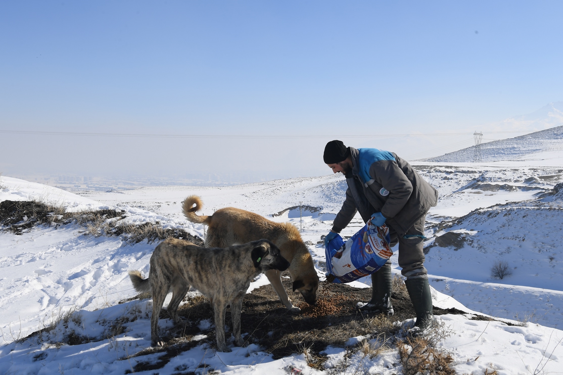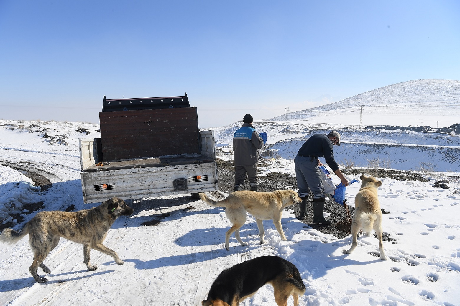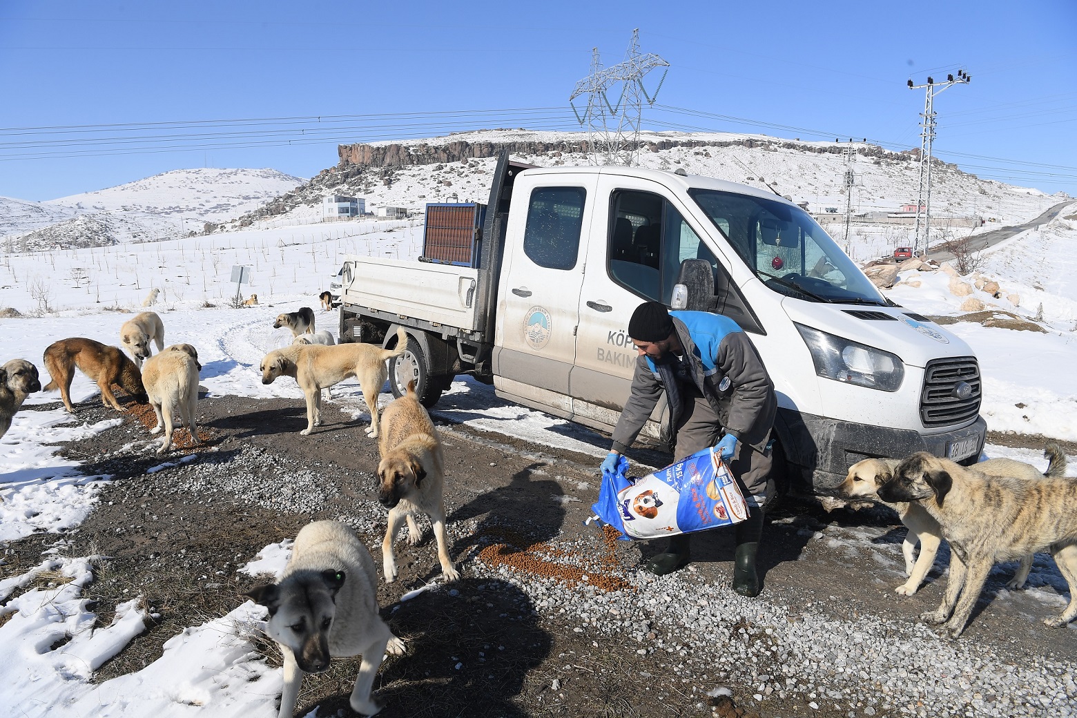 Kayseri’de yerel yönetim faaliyetlerini sadece insanların konforu ve güvenliği bağlamında değil, diğer canlılara da yaşamdan kaynaklanan hakları dolayısıyla hizmet gerçekleştiren Büyükşehir Belediyesi, ağır kış şartlarında yem bulmakta zorlanan sokak hayvanlarına el uzatarak onların beslenme ihtiyacını gideriyor. Büyükşehir Belediyesi, sadece beslenme değil hayvan barınakları ile de sokak hayvanlarının barınma ihtiyaçlarını karşılıyor.