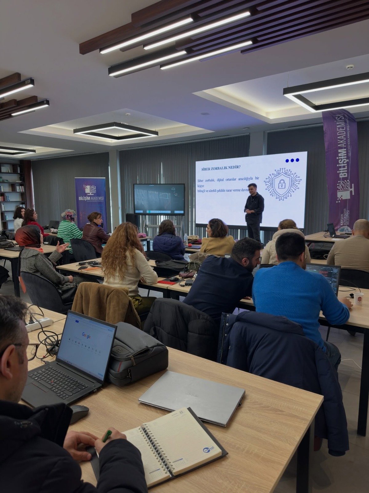 Bu çerçevede Kayseri Bilim Merkezi’ndeki Bilişim Akademisi’nde gerçekleştirilen siber güvenlik eğitiminde, Milli Eğitim Bakanlığı’nda görevli öğretmenlere yönelik önemli bilgiler aktarıldı.