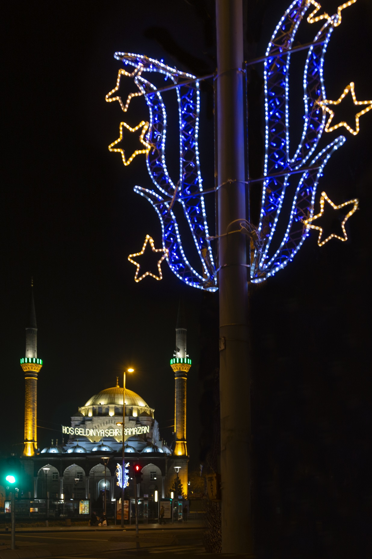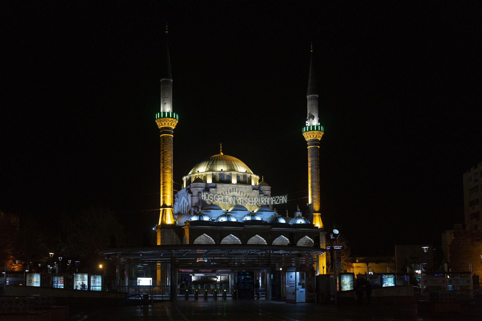 11 ayın sultanı Ramazan ayının gelmesiyle Büyükşehir Belediyesi tarafından Bürüngüz Camisi’ne ‘Hoş geldin Ya Şehri Ramazan’ yazılı mahya asıldı.