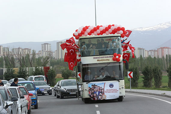 Harikalar Diyarı'ndaki 23 Nisan Şöleni'nde Büyükşehir Belediyesi tarafından yapılan Kayseri Gezi Otobüsü de ilk kez kullanıldı. Cumhuriyet Meydanı'ndan hareket ederek her gün isteyen kişileri Kayseri'nin tarihi mekanlarına götürecek olan Kayseri Gezi Otobüsü'nün ilk yolcuları çocuklar oldu. Büyükşehir Belediye Başkanı Çelik, otobüse çocuklarla birlikte binerek Harikalar Diyarı'nı gezdi. Otobüsün şehri gezmek isteyenlerin hizmetinde olacağını belirten Başkan Çelik, Kayseri Gezi Otobüsü'ne binenlerin şehrin tarihi eserleri hakkında bilgi alabileceklerini kaydetti.