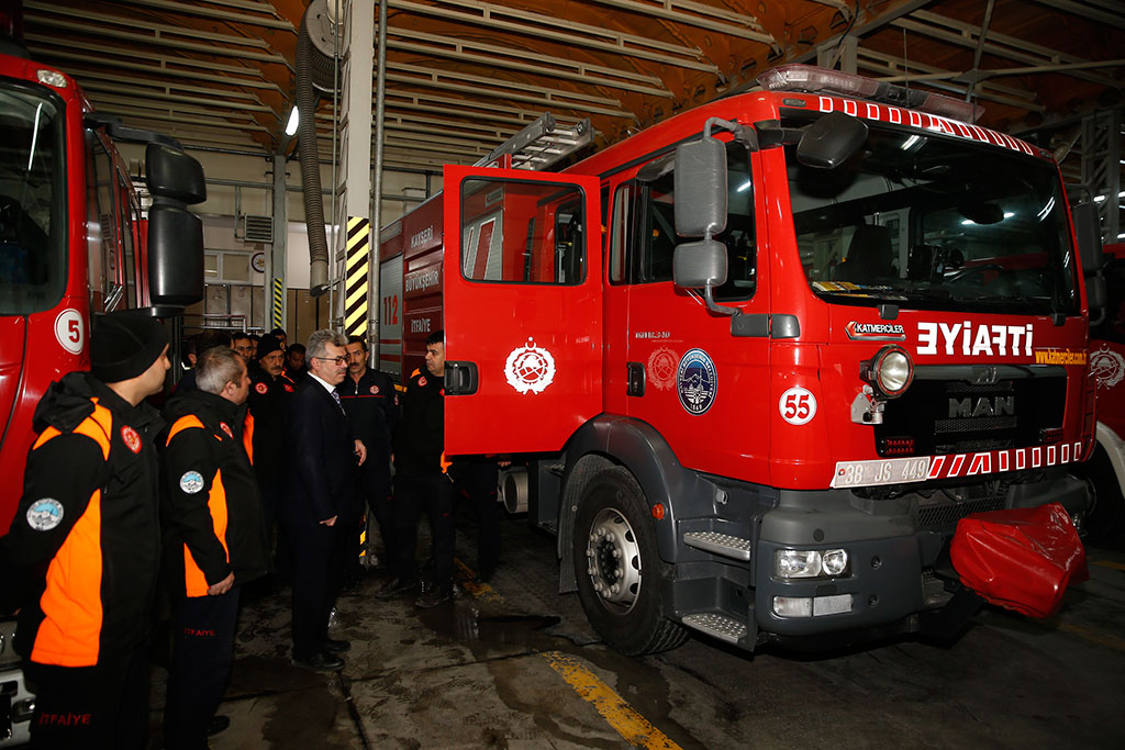 Kayseri Büyükşehir Belediye Başkanı Dr. Memduh Büyükkılıç, 6,8 büyüklüğündeki depremin vurduğu Malatya ve Elazığ’da incelemelerde bulundu. Başkan Büyükkılıç’ın görüşmeleri sırasında AFAD’ın Büyükşehir Belediyesi’nden talebi üzerine iki itfaiye aracı ile 8 kişilik ekip Elazığ’a uğurlandı. Kayseri Büyükşehir Belediyesi, Elazığ depreminin hemen ardından AFAD ile koordinasyonu sağlayarak deprem bölgesine iş makineleri ve itfaiye araçlarıyla 20 kişilik ekip göndermişti. Büyükşehir Belediyesi İtfaiyesi bünyesindeki arama kurtarma ekibi bölgedeki çalışmalarını tamamlayarak Kayseri’ye döndü. Büyükşehir Belediye Başkanı Dr. Memduh Büyükkılıç da depremin en büyük hasarı verdiği Malatya ve Elazığ’da incelemelerde bulundu. Depremin yıktığı binaların enkaz alanların, depremzedeler için kurulan çadır bölgelerinde incelemelerde bulunan Başkan Memduh Büyükkılıç, vatandaşlara geçmiş olsun dileklerinde bulundu ve yetkililerle de görüşerek taleplerini aldı. Büyükşehir Belediye Başkanı Dr. Memduh Büyükkılıç’ın Elazığ’da bulunduğu sırada AFAD kanalıyla Büyükşehir Belediyesi’nden iki itfaiye aracı talebinde bulunuldu. Büyükşehir Belediyesi İtfaiyesi talep üzerine hazırlıklarını yaparak sekiz kişilik ekiple iki itfaiye aracını bölgeye gönderdi. İtfaiye erlerini Elazığ’a Büyükşehir Belediyesi İtfaiye Daire Başkanı Mustafa Metin Kızılkan ile arkadaşları uğurladı.
