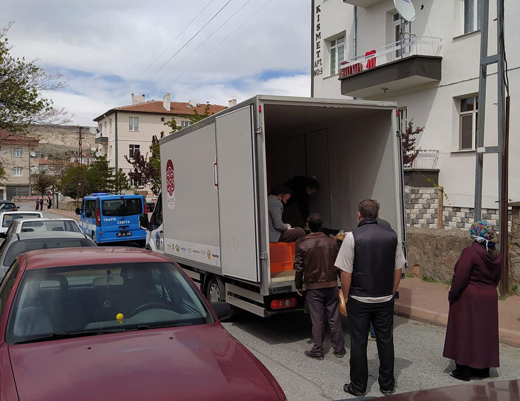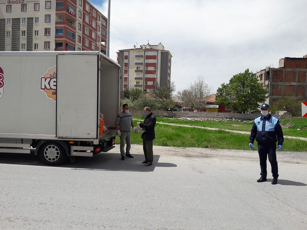 Kayseri Büyükşehir Belediyesi Kent Ekmek ve zabıta ekipleri dört günlük kısıtlama süresince vatandaşların ekmek ihtiyaçlarını karşılamak için belirlenen plan kapsamında mahallelerde ekmek dağıtımı gerçekleştirdi. Kayseri Büyükşehir Belediyesi koronavirüs süresince vatandaşların ihtiyacını karşılamak adına önemli hizmetlerde bulunuyor. 23 Nisan ile başlayan dört günlük kısıtlama süresinde de vatandaşların herhangi bir mağduriyet yaşamaması için planlamalarını önceden yapan Büyükşehir Belediyesi ekipleri mahalle mahalle gezerek ekmek dağıtımı yaptılar. Sosyal mesafe ve dezenfeksiyon kurallarına uyularak gerçekleştirilen ekmek dağıtımı vatandaşlar tarafından memnuniyetle karşılandı. Öte yandan Kayseri Büyükşehir Belediyesi bünyesindeki Ulaşım A.Ş.’ye bağlı otobüs işletmeleri de kısıtlama süresince başta sağlık ekipleri olmak üzere çalışmaya devam eden vatandaşlar için önceden duyurulan saatlerde otobüs ve tramvay seferleri düzenledi.